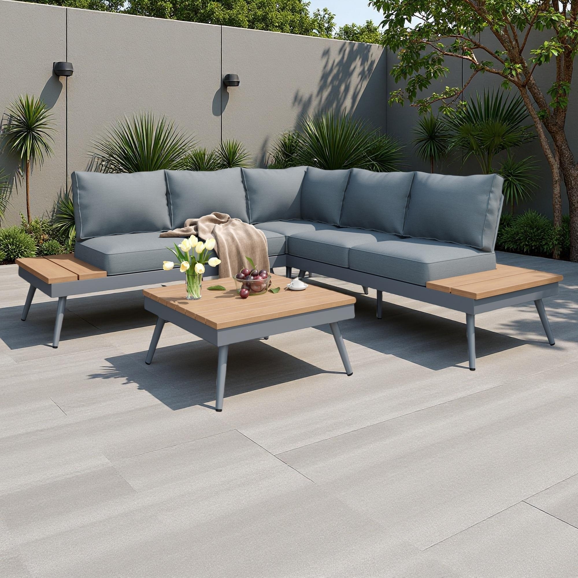 94.5" Outdoor Patio Aluminum L-Shaped Sectional Sofa Set with Coffee Table and Side Table