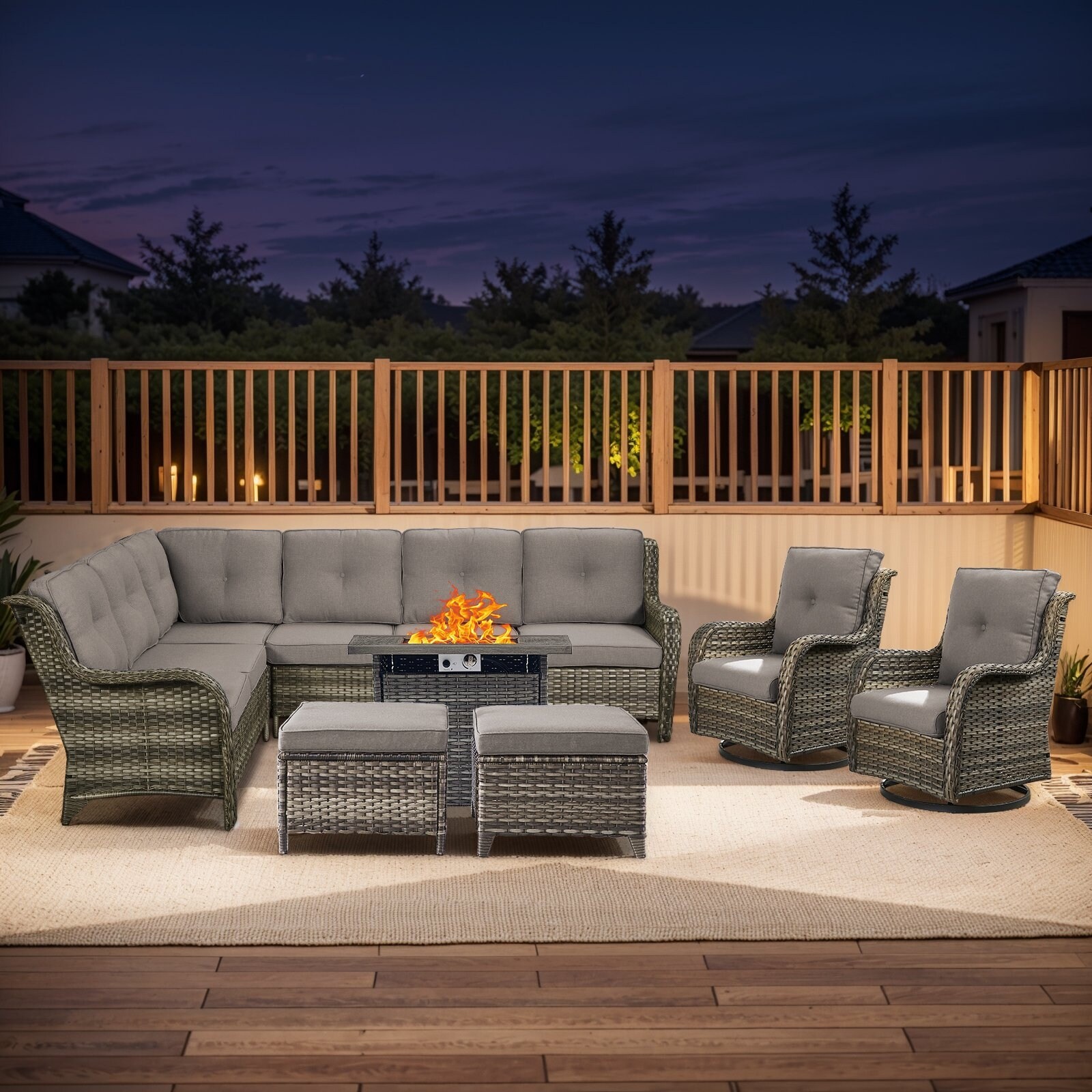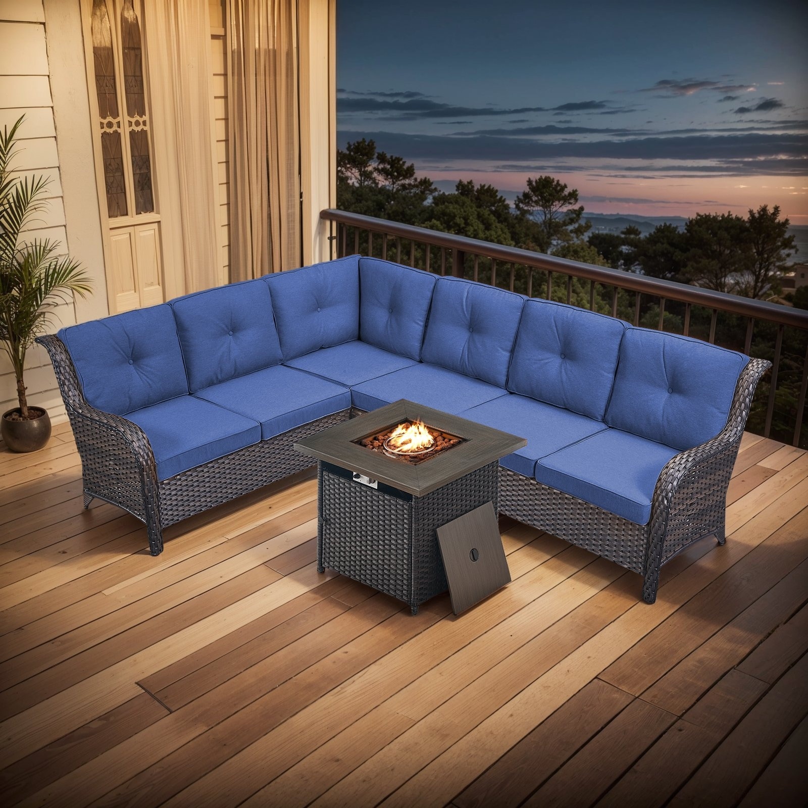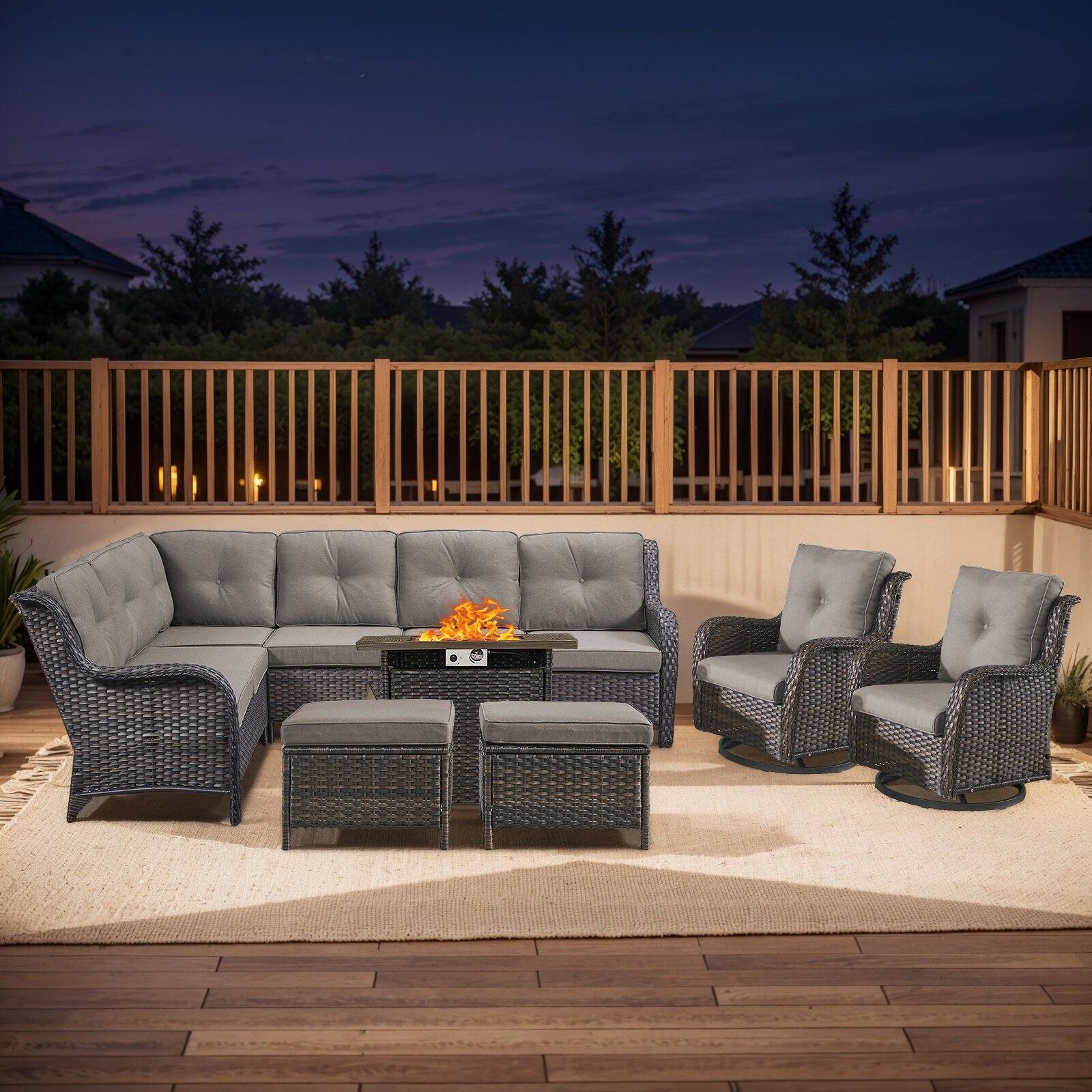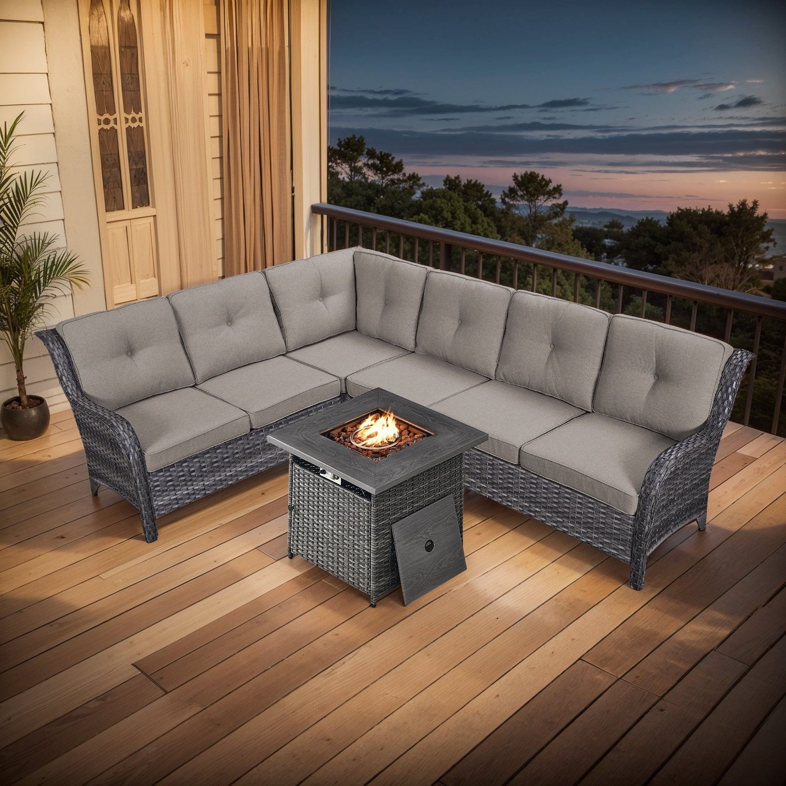 Outdoor 2 Sectional Sofa with Fire Pit Table Set
