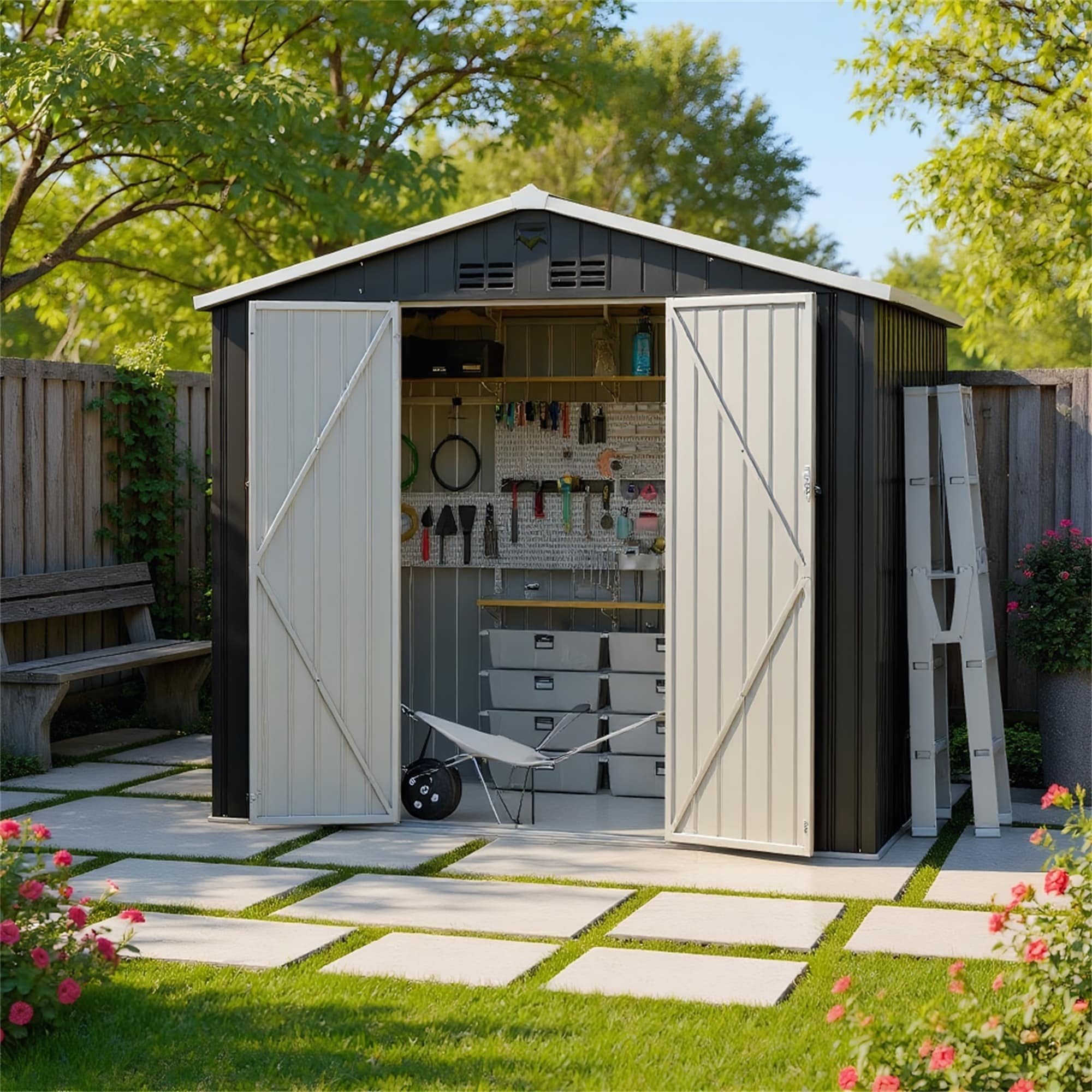 Metal Garden Sheds 10FTx8FT Outdoor Storage Sheds - N/A