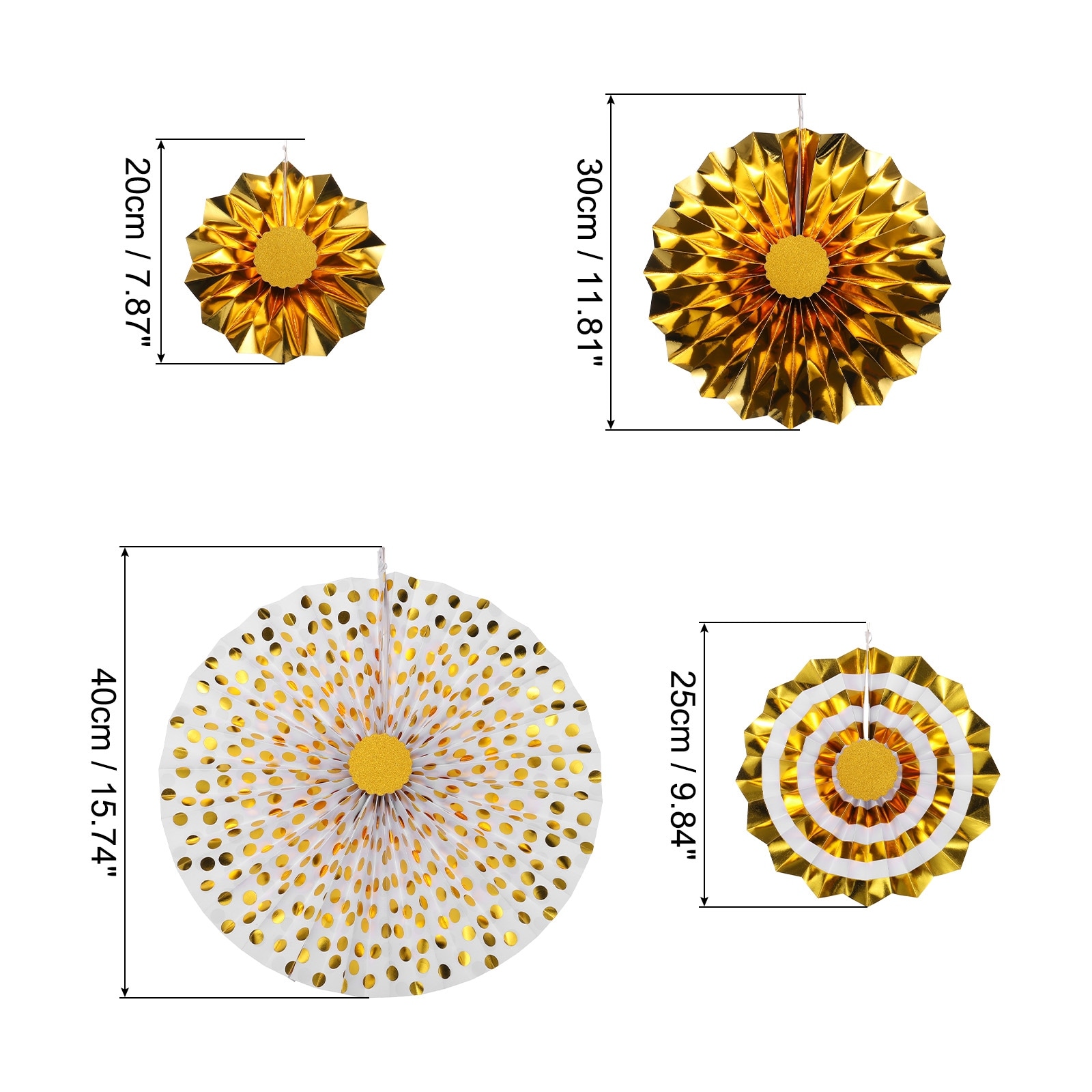 Hanging Paper Fans Party Set 8Pcs Decoration for Birthday White Black Gold - White Black Gold