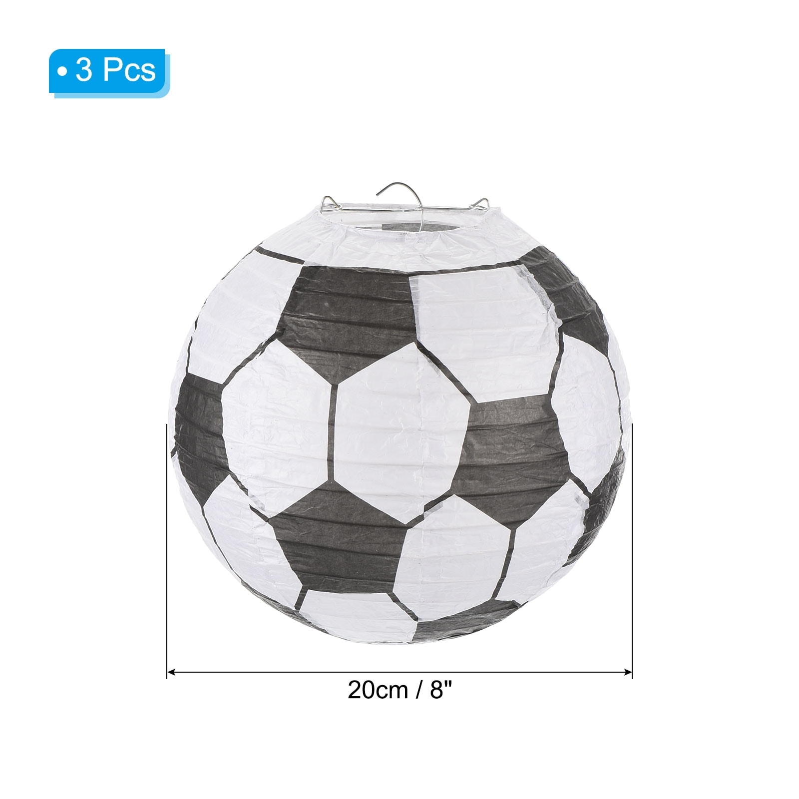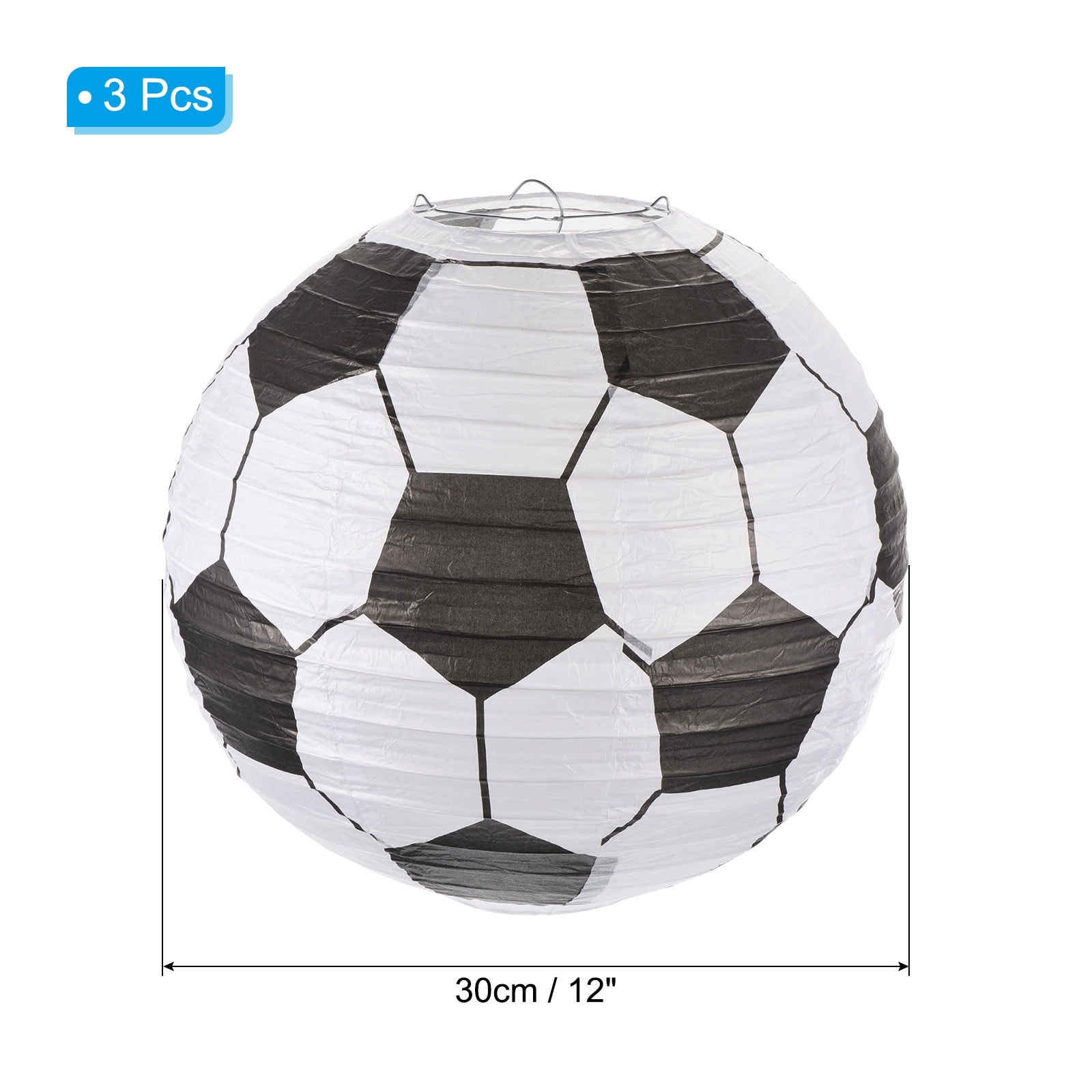 3Pcs Soccer Paper Lantern for Party Decorations, White Black - White Black