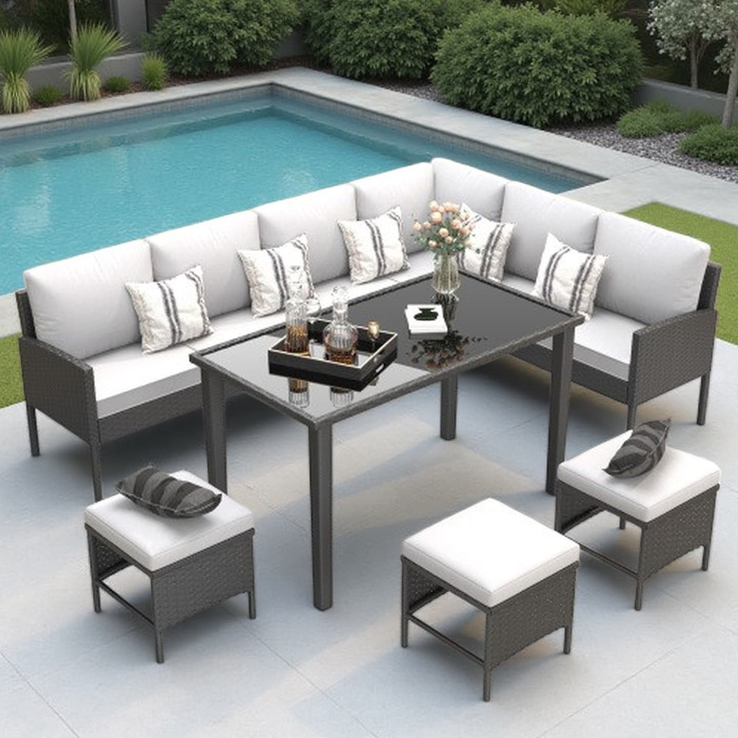 PURPLE LEAF Santorini 6-11Piece Grey with Ottoman and Cushion Sofas Sectional for Poolside Graden Patio Conversation Set