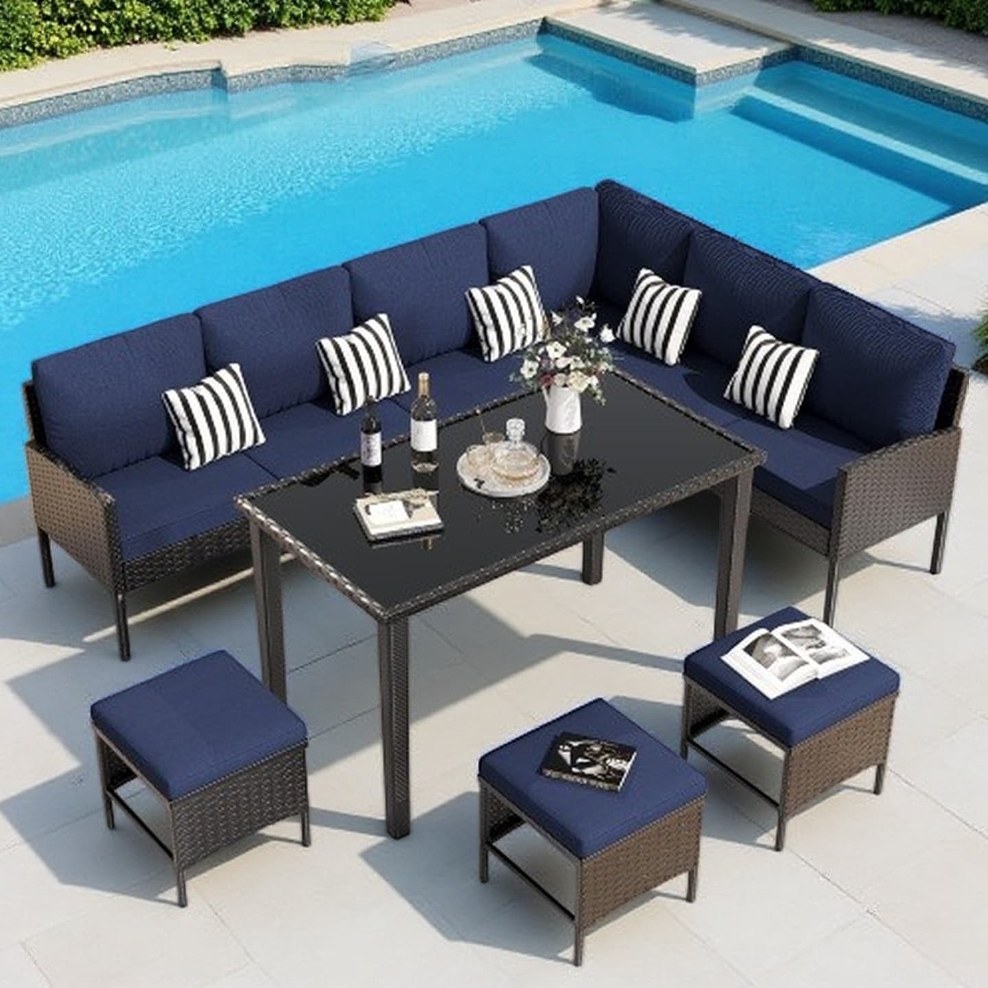 vidaXL Patio Sofa Set with Cushions Outdoor Furniture 7 Piece Poly Rattan - 21.7 x 24.4 x 27.2