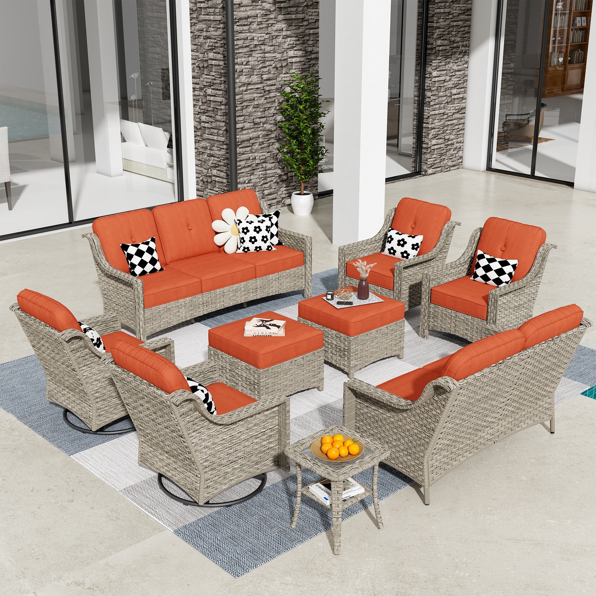 OVIOS 9-piece Patio Wicker Swivel Rocking Chair Set With Fire Pit