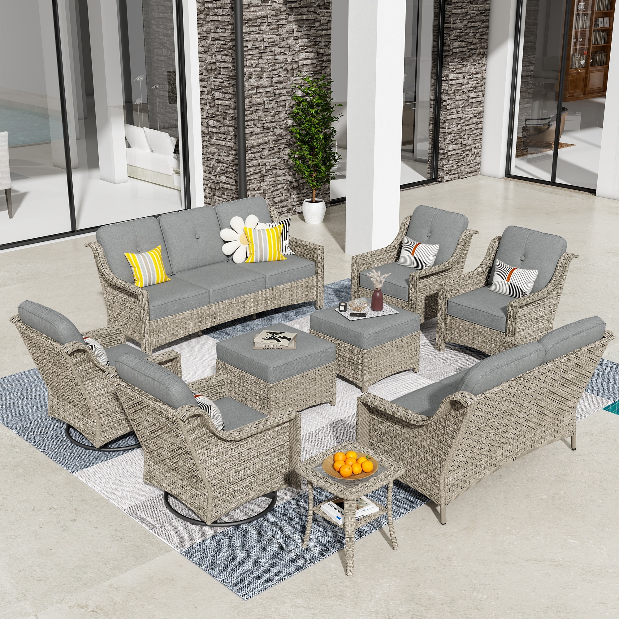 Gymojoy 5-7 Person Outdoor Wicker Patio Conversation Furniture Sofa Set With Fire Pit Table & Swivel Chairs