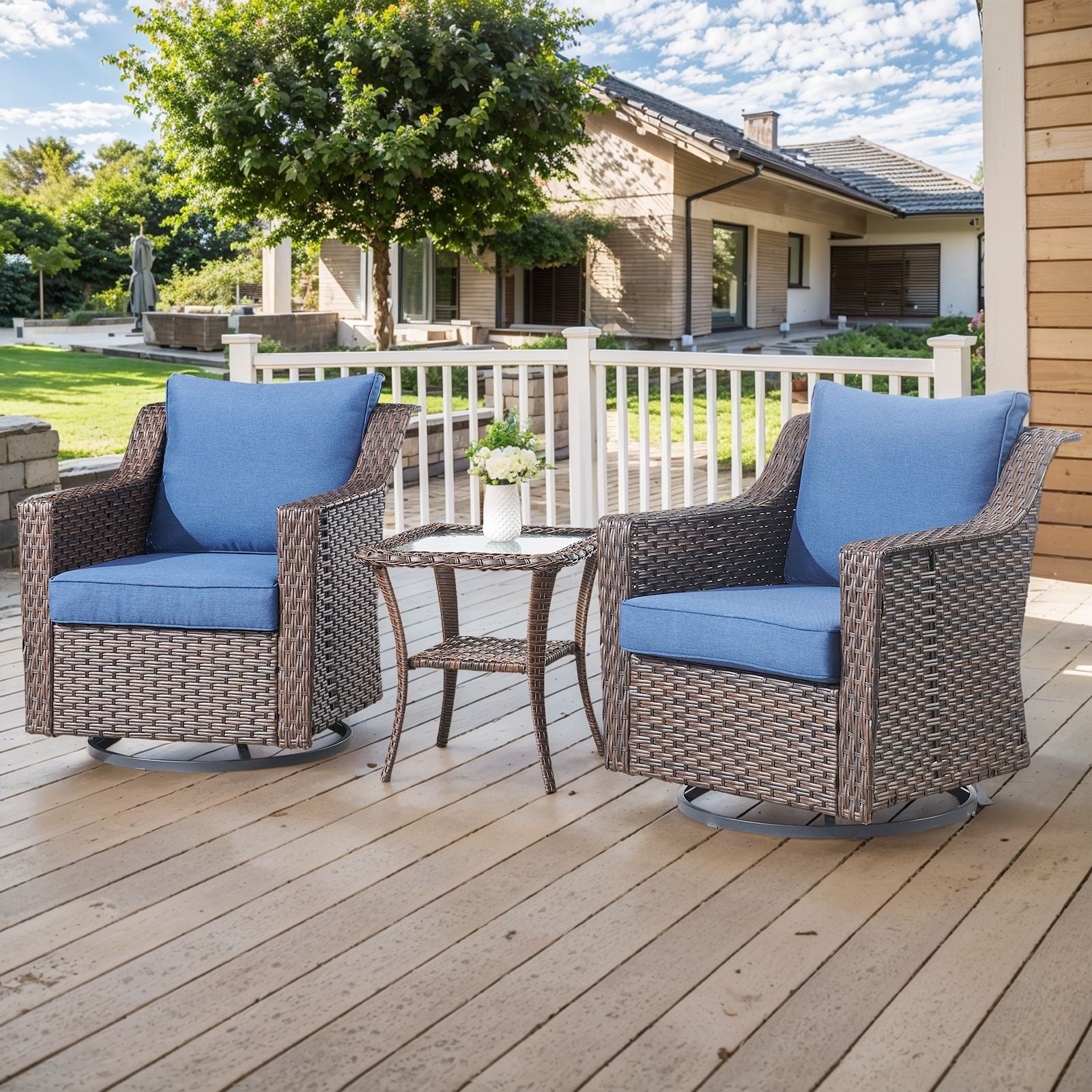 Pocassy Outdoor Sofa Swivel Chair Ottoman w/ 43" Fire Pit Set