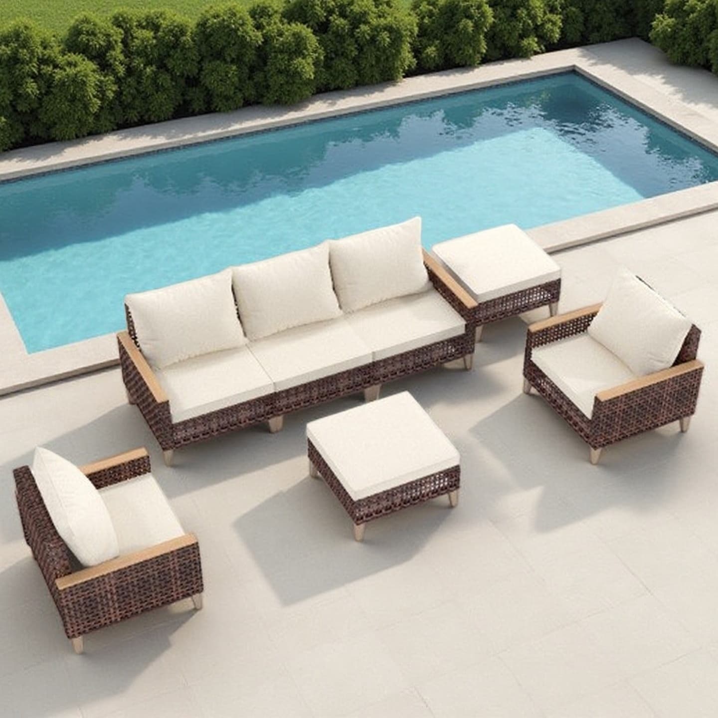 Pocassy 7 Pieces Outdoor Patio Sofa Swivel Chair Ottoman Set
