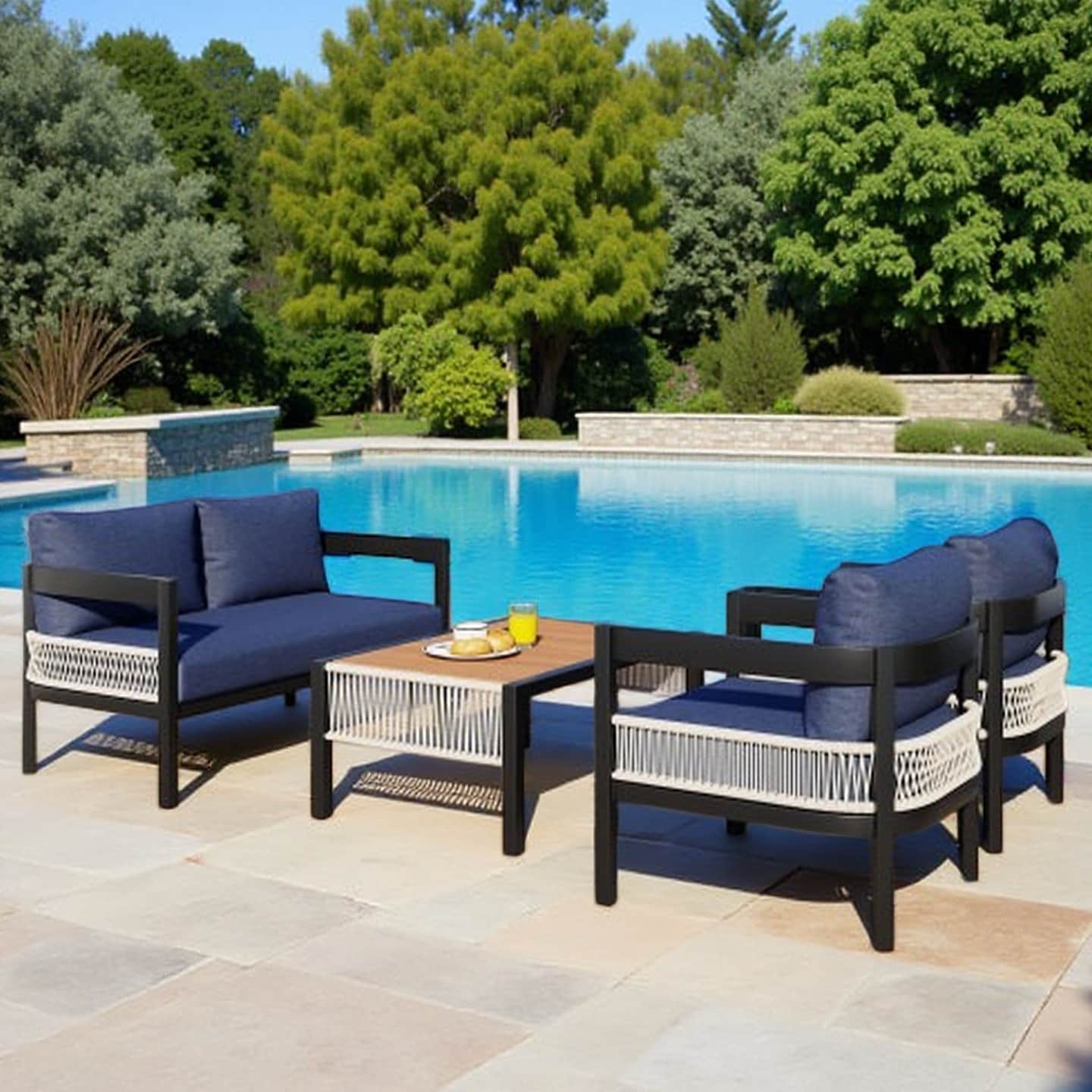 Outdoor Sofa with Swivel Rocker Chairs and Fire Pit Table
