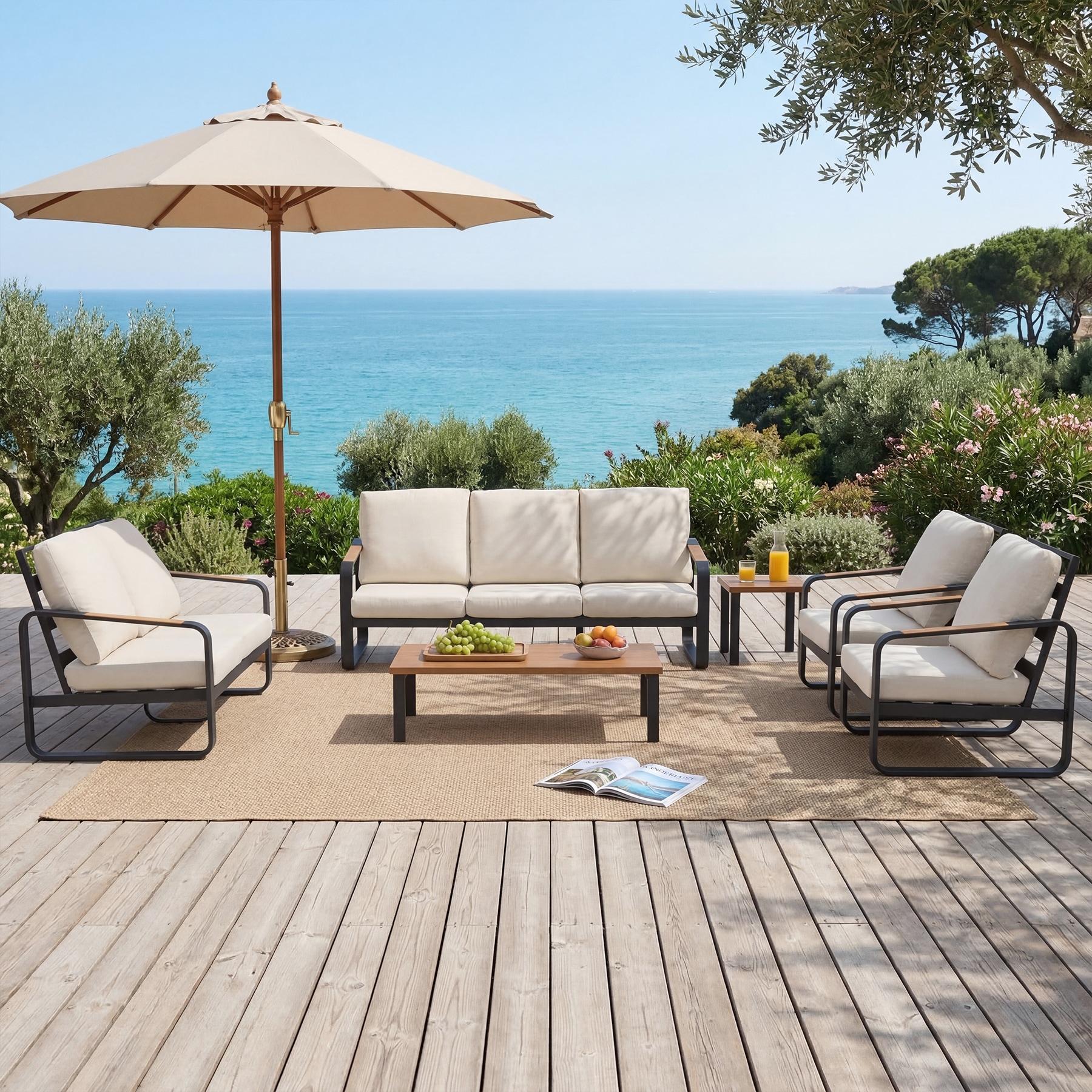 6-Piece Outdoor Patio Conversation Sofa Set with Cushions