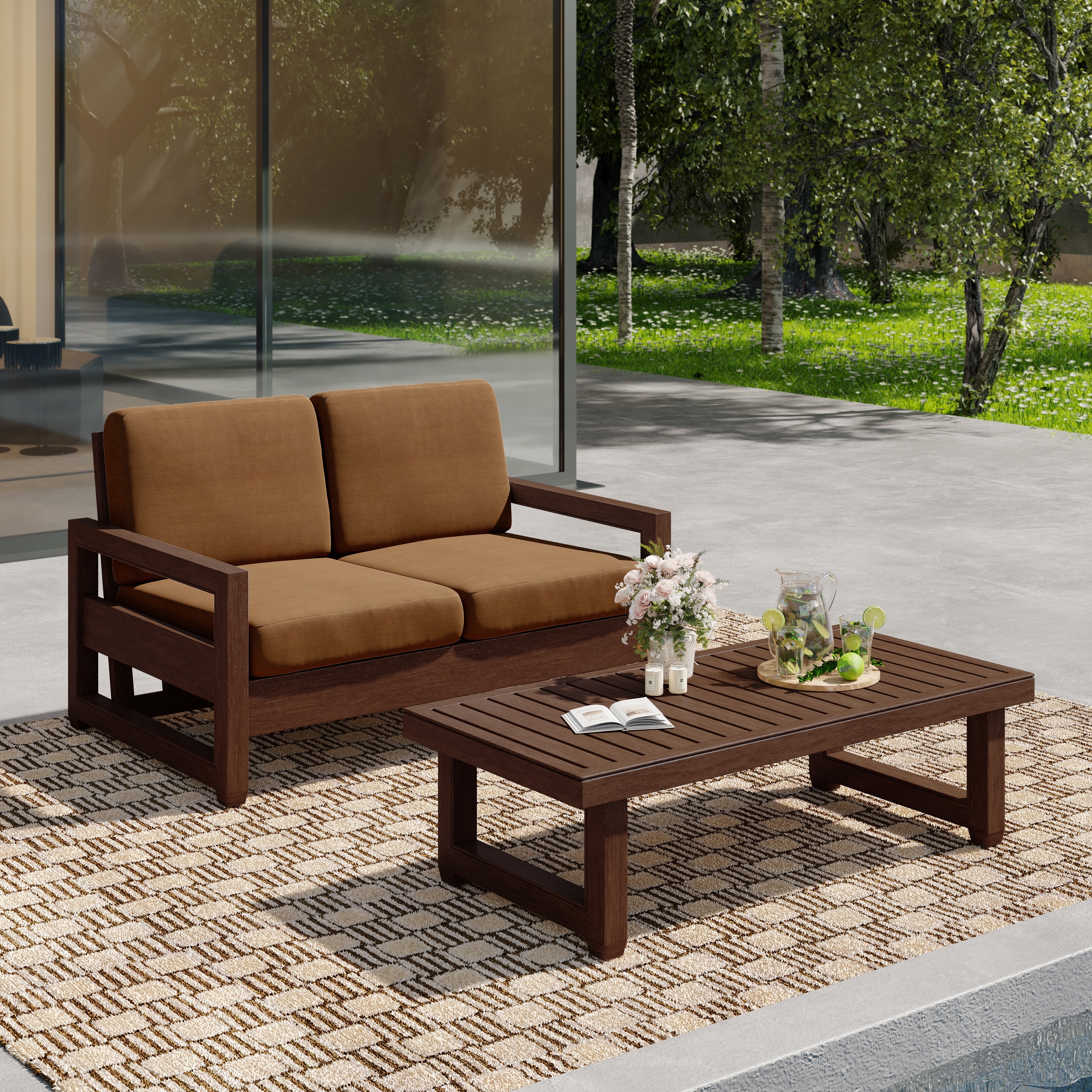 Outdoor Patio Loveseat Table Set Teak Wood with Cushion