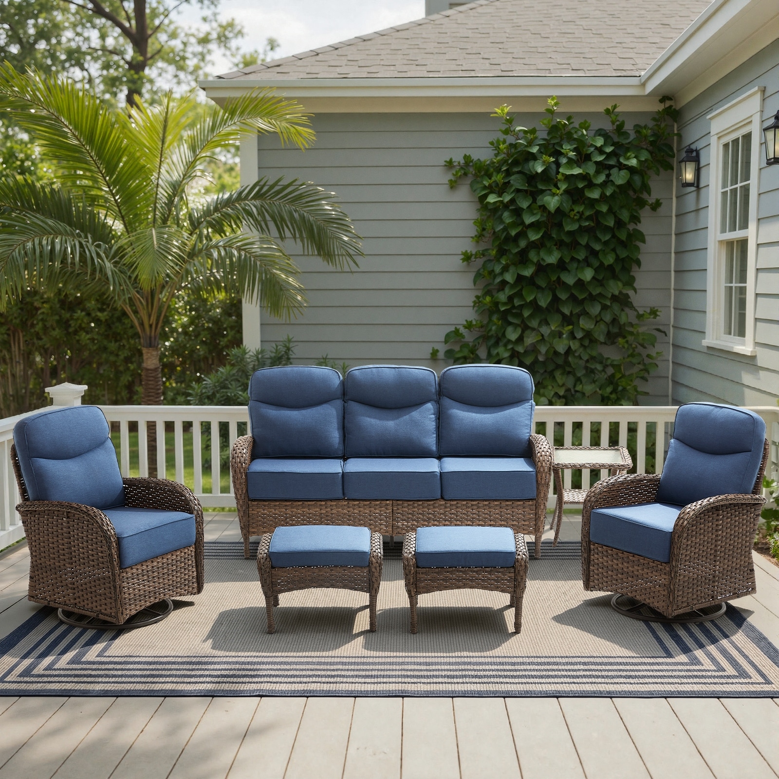 Pocassy 5PCS Outdoor 6Inch Sofa Swivel Chair Table w/ Fire Table