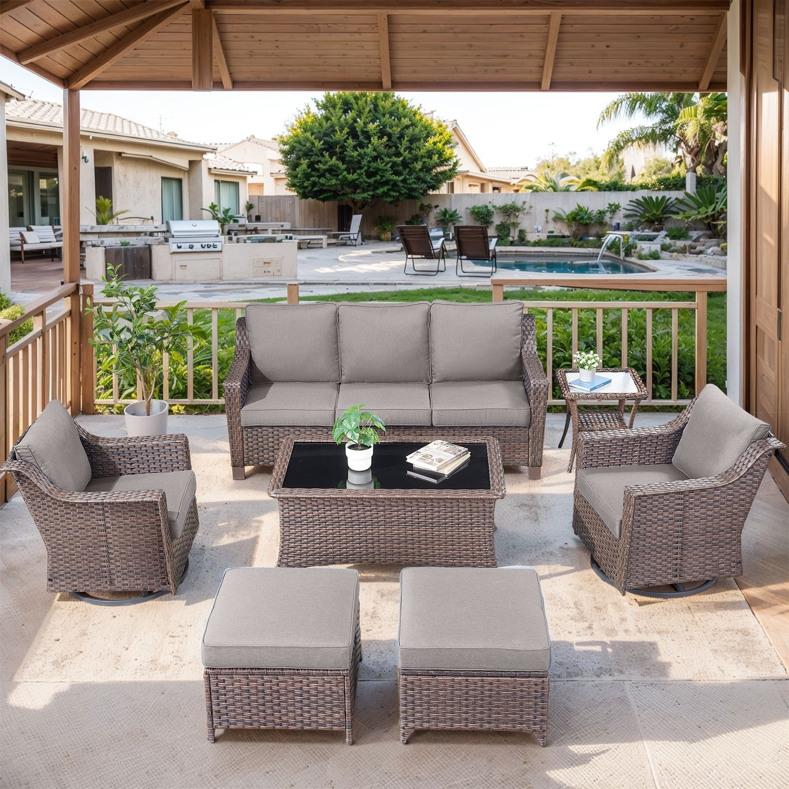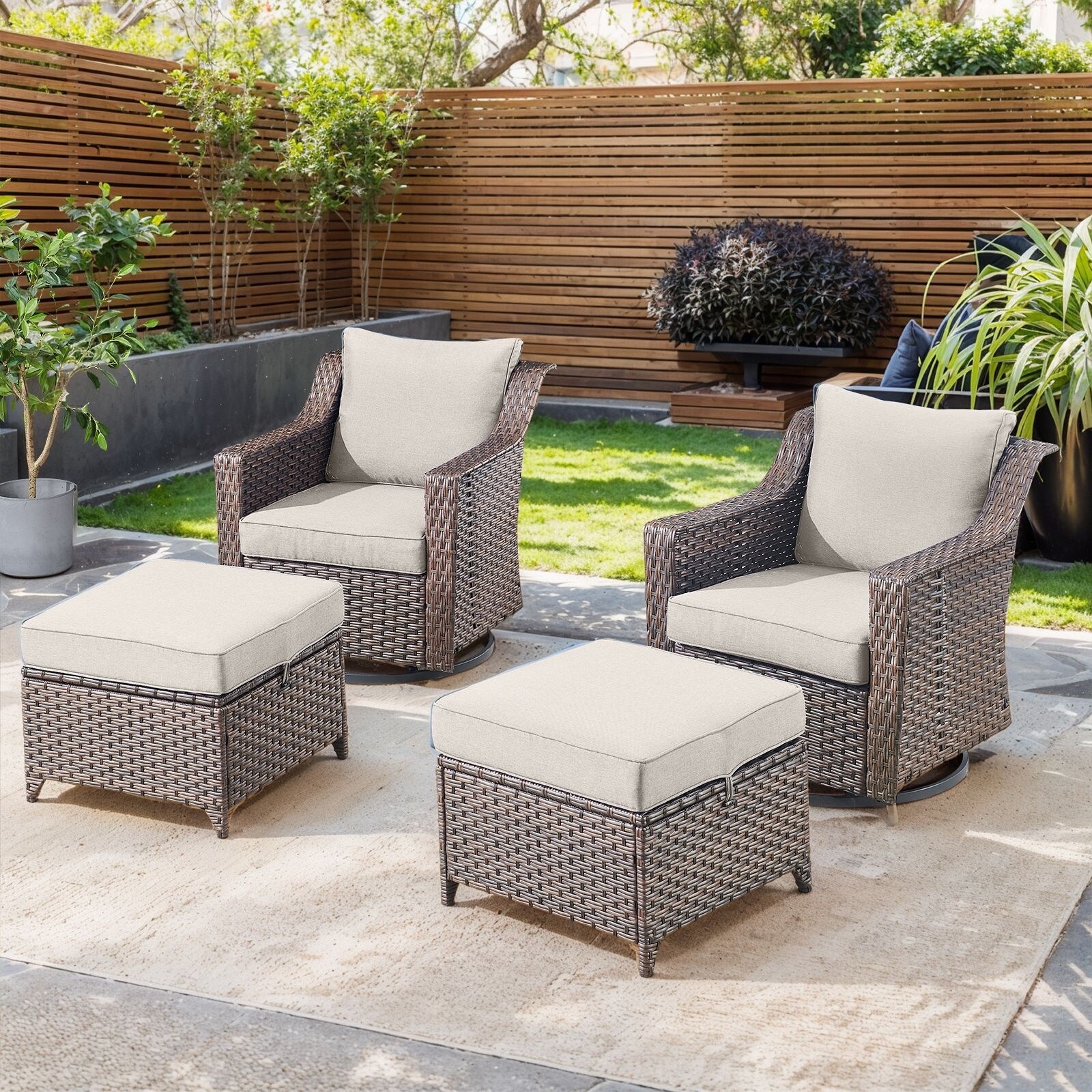 Pocassy Outdoor 6" Sofa Swivel Chairs with Fire Table Funiture