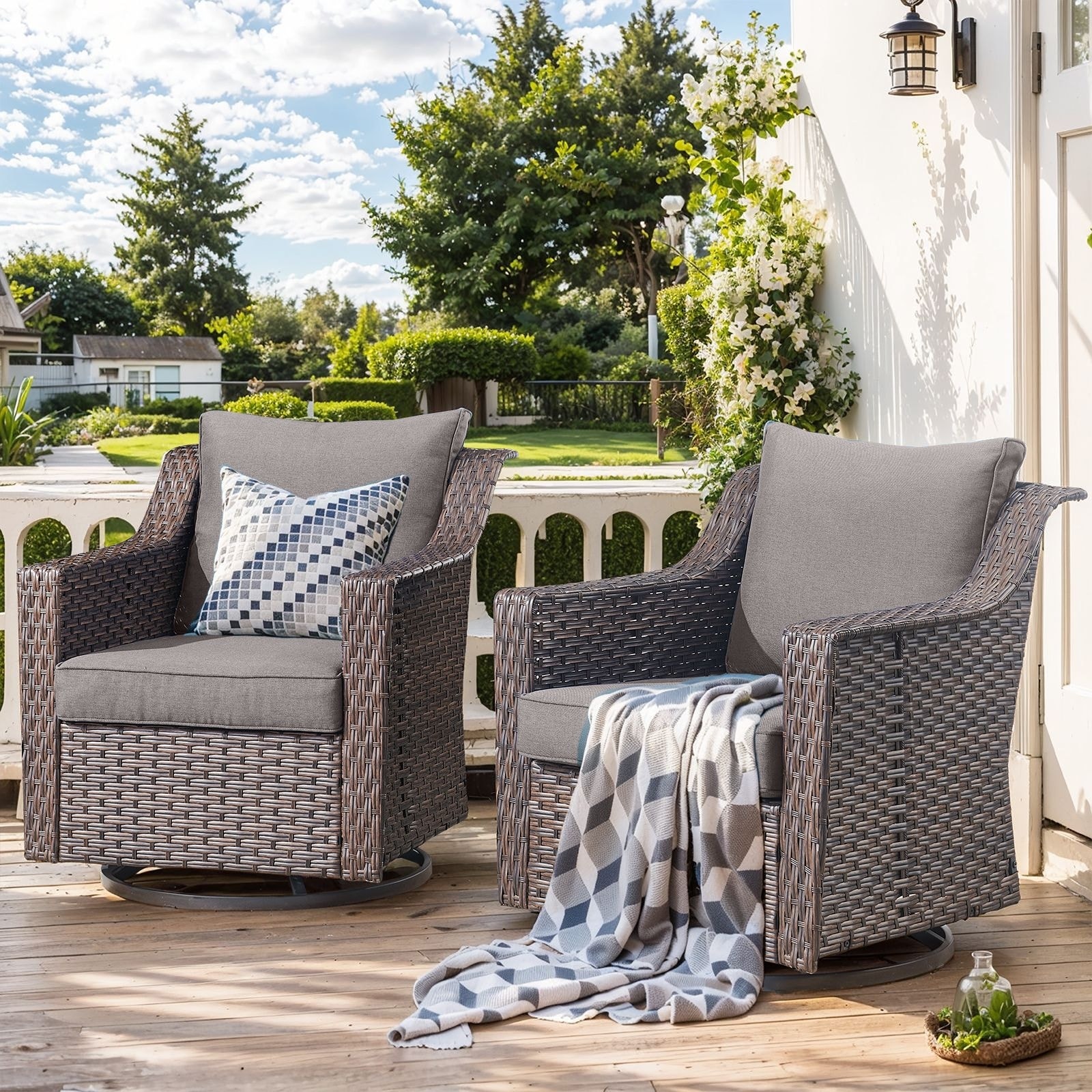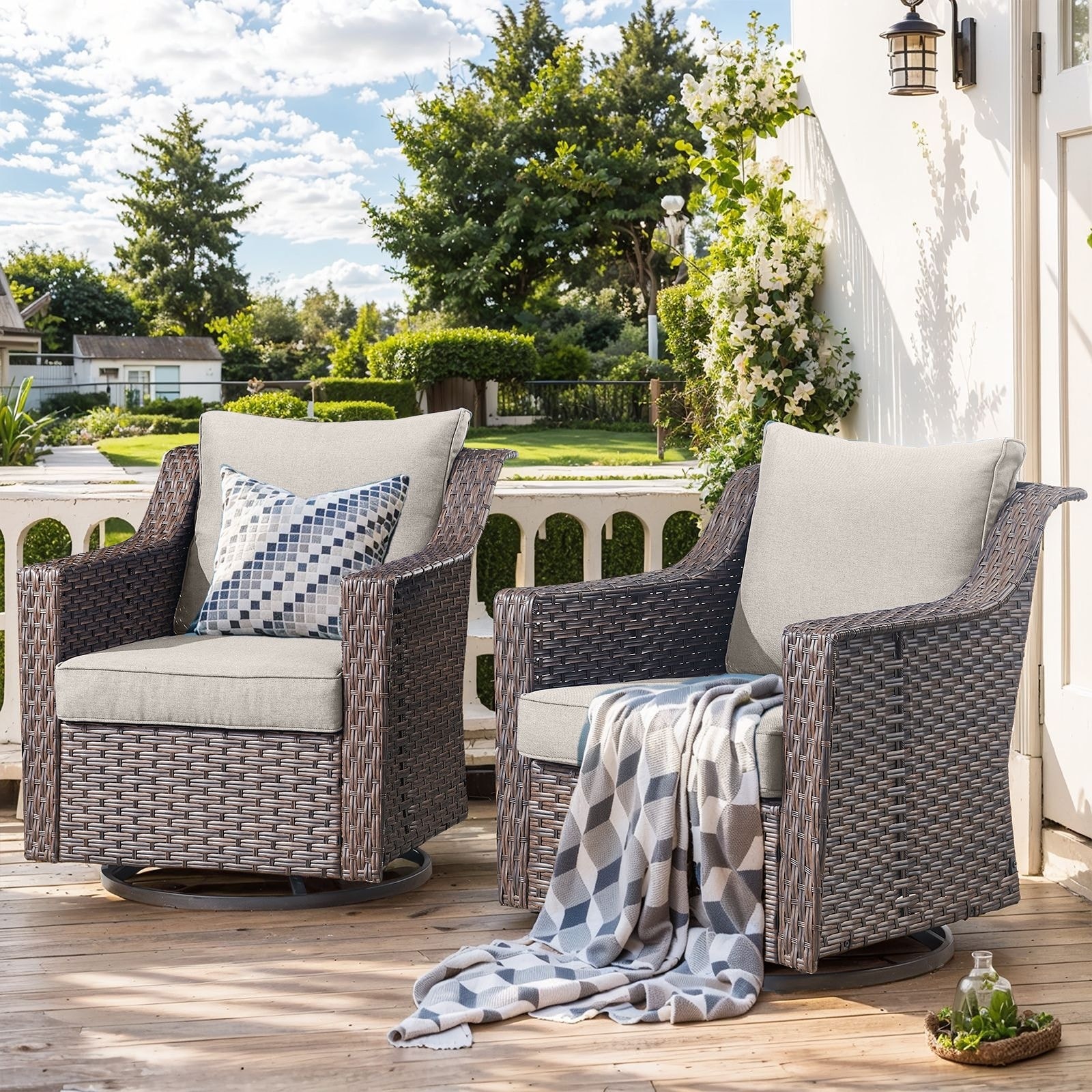 Gymojoy 7 Pieces Patio Sofa with Rattan Swivel Rocking Chair Ottomans Outdoor Conversation Set