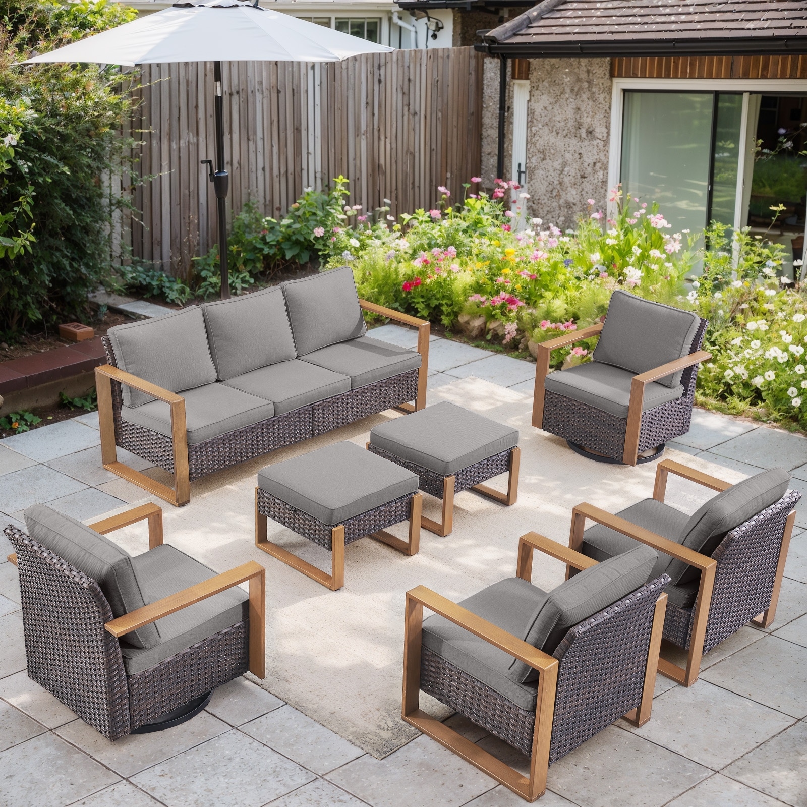 Pocassy 7-Piece Outdoor Patio Sofa Swivel Glider Chairs with Ottoman