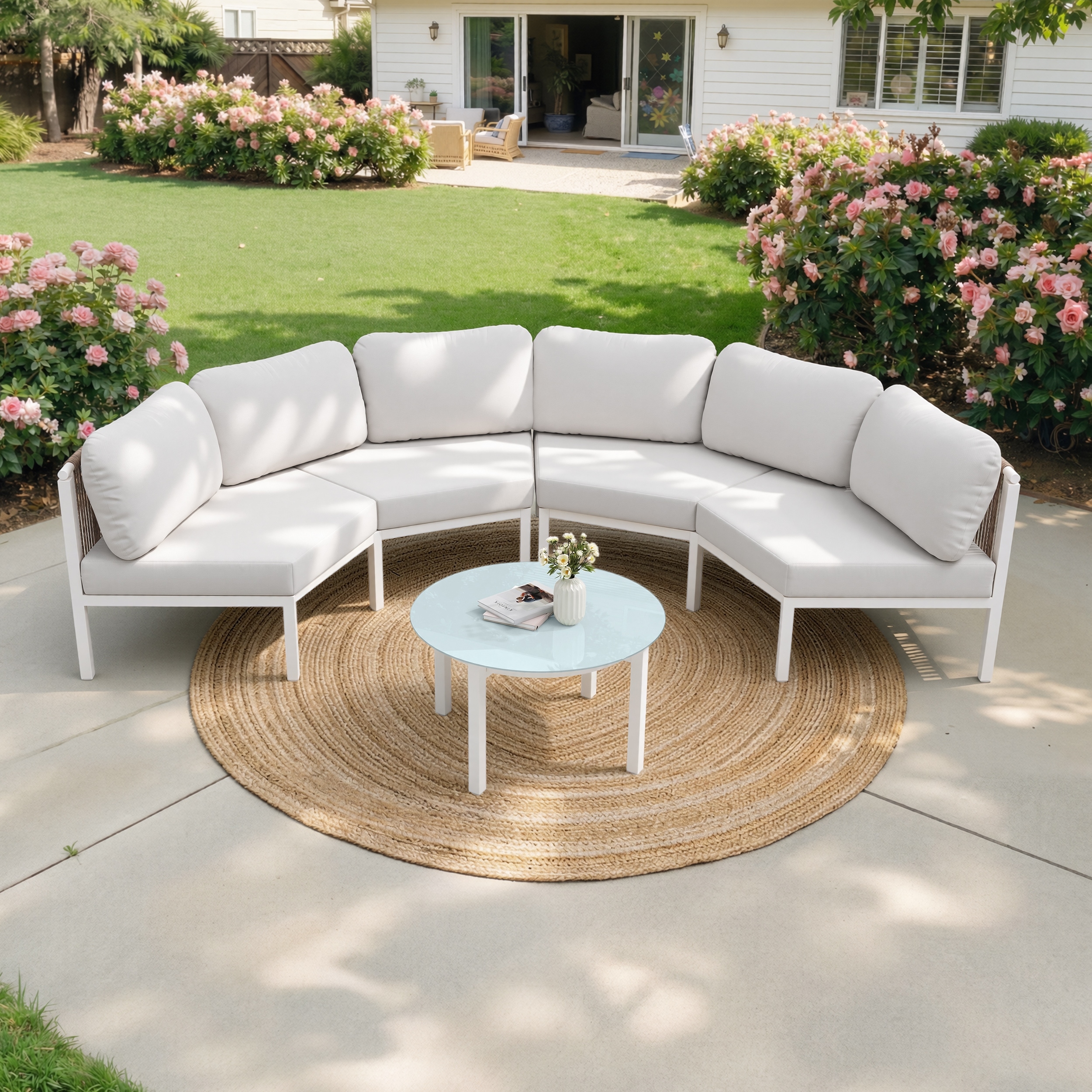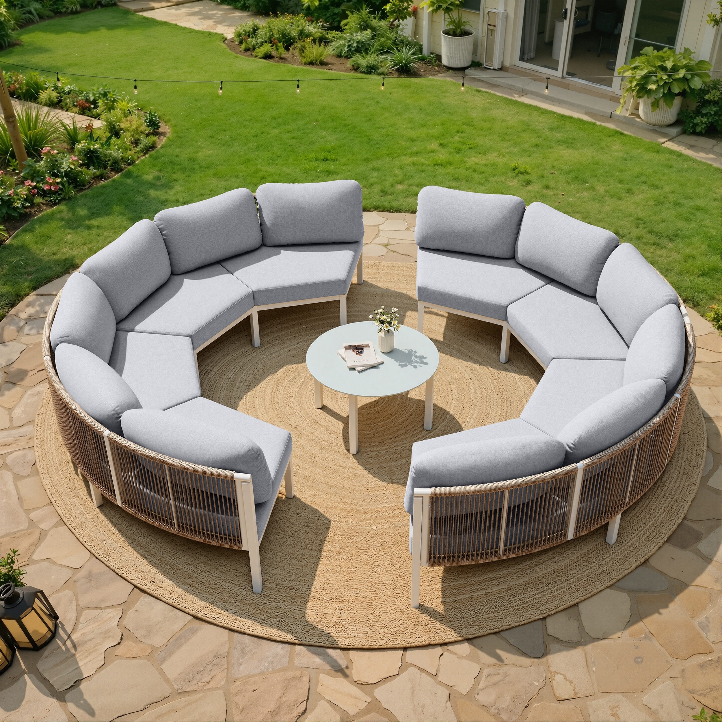Outdoor All-Weather Aluminum Half Moon Curved Sofa Rattan Sectional Sofa Deep Seating Patio Outdoor Conversation Sets