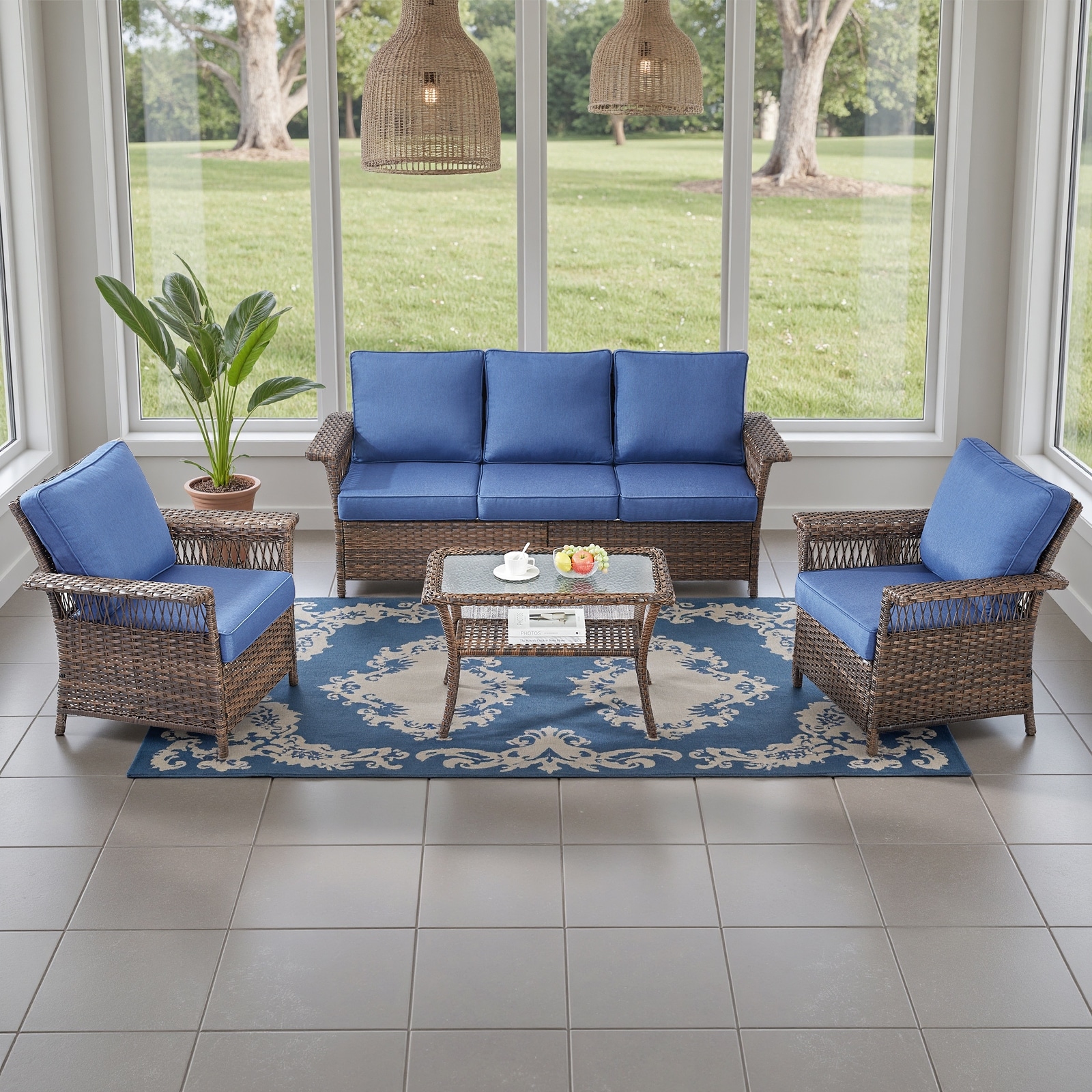Gymojoy Outdoor Wicker Patio Furniture Set with 3-Seat Sofa, Chairs & Coffee Table for Backyard