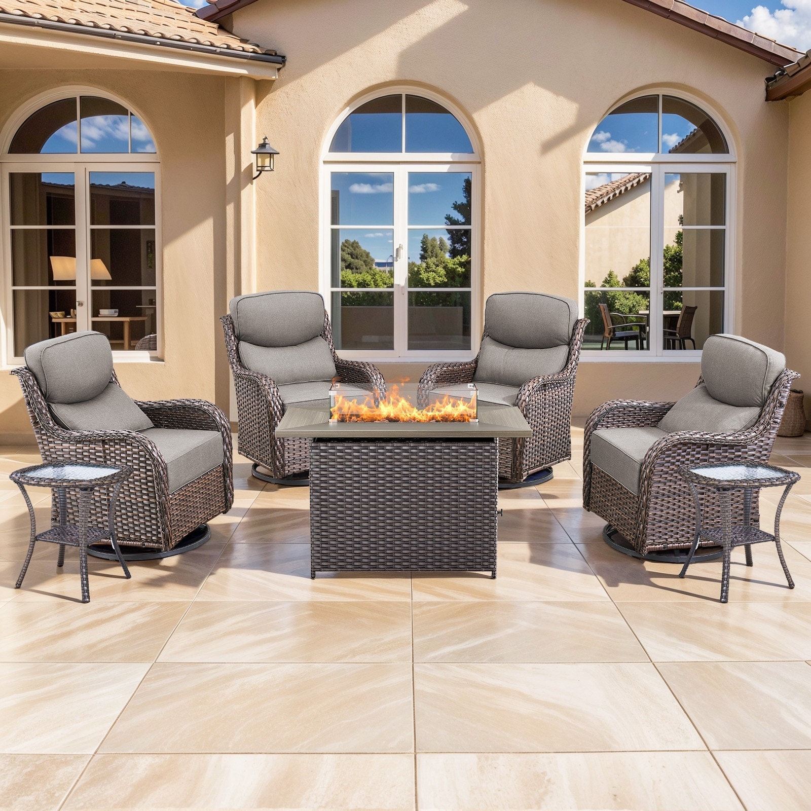 Pocassy Outdoor 6 Inch Sofa Swivel Chairs with Fire Pit Table Set