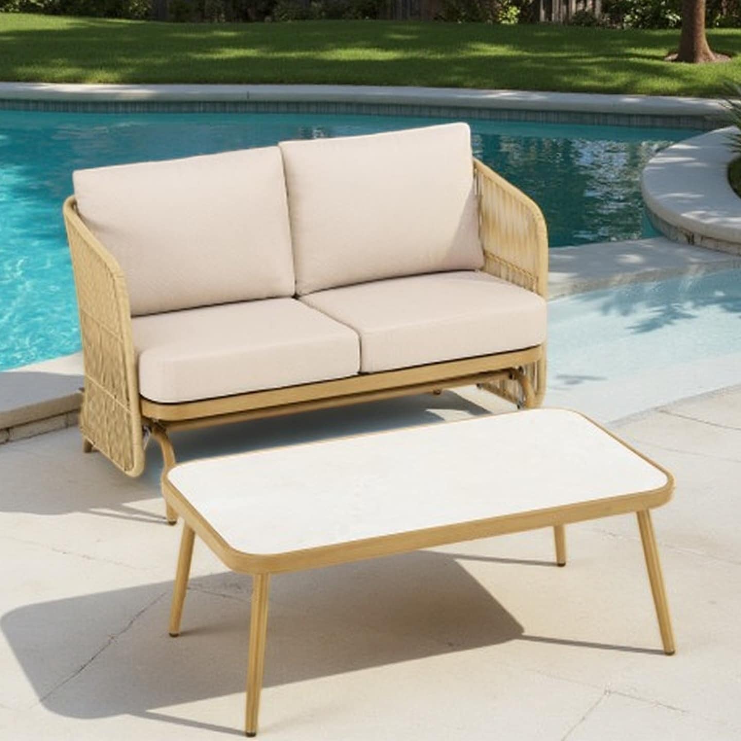 Spruce & Spring Outdoor Patio Furniture Set Aluminum Sofa Accent Chair