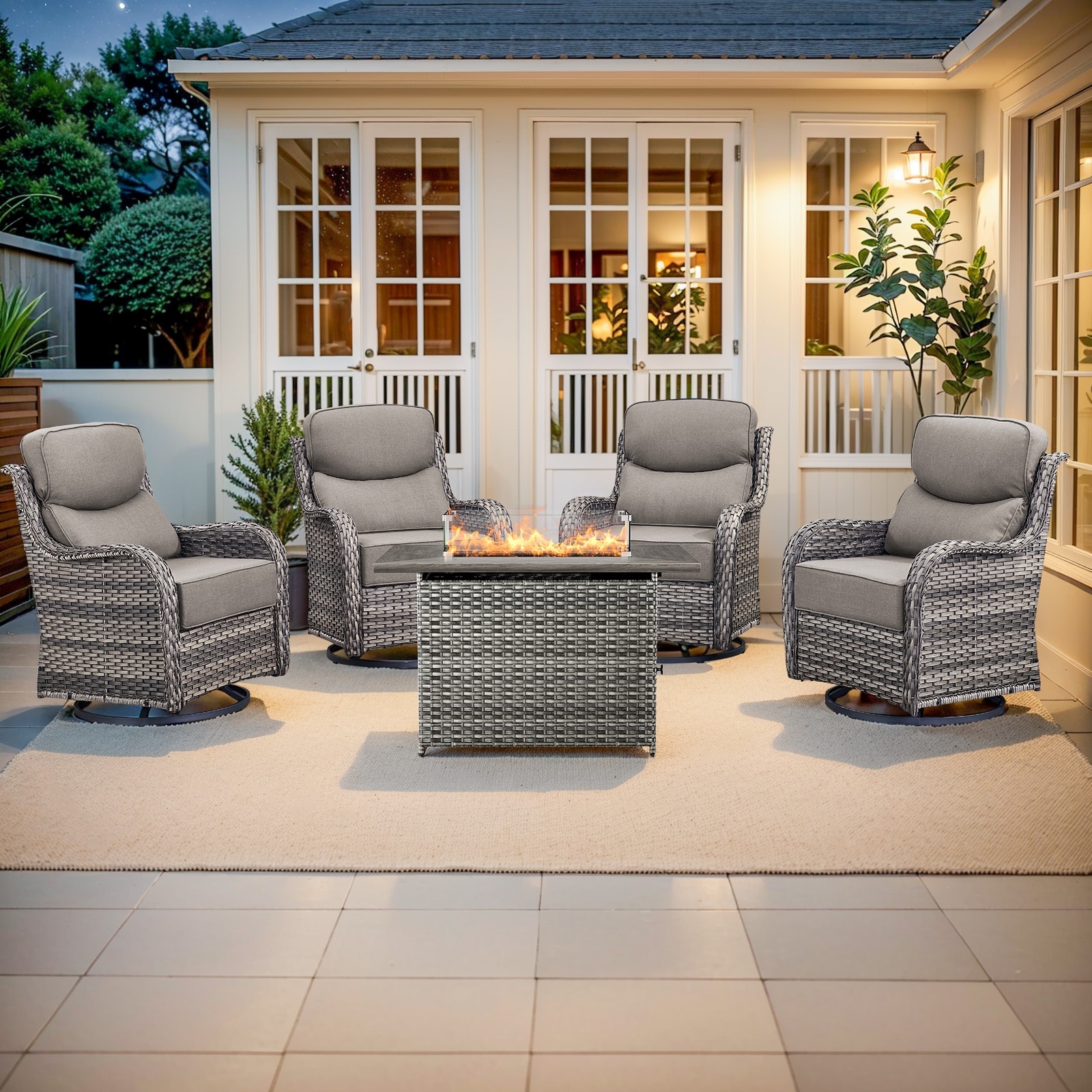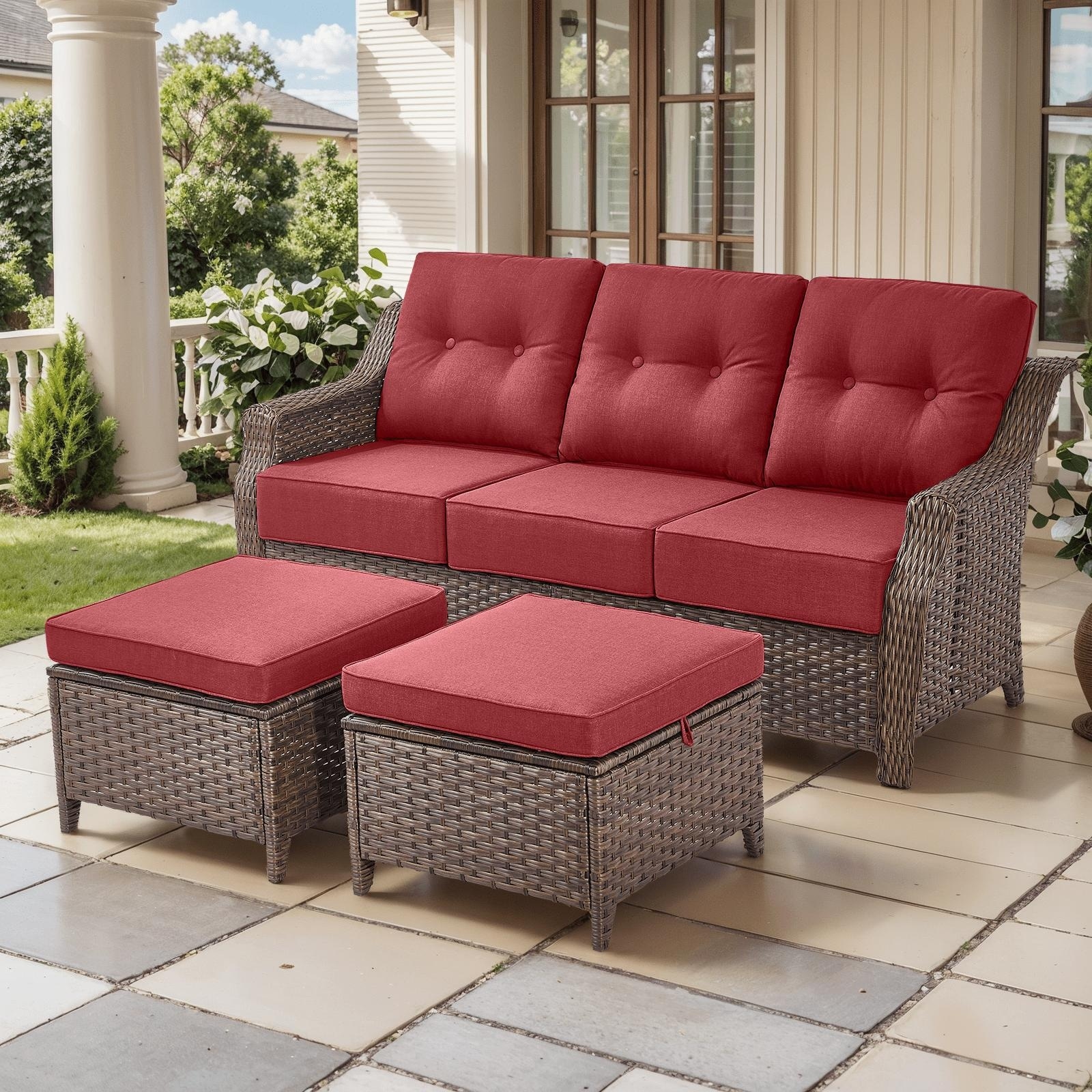 Pocassy Outdoor Sofa, Swivel Chair, Patio Chair Ottoman Set
