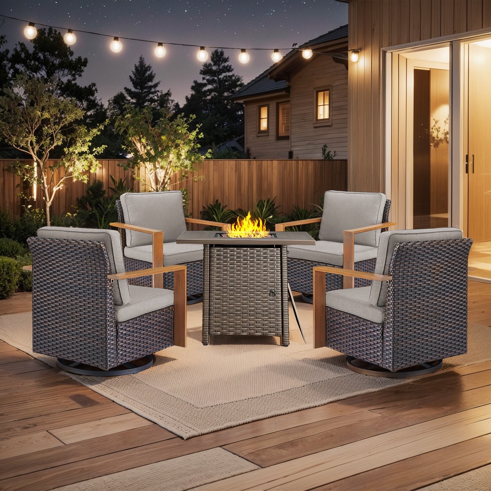 Pocassy 5-Piece Outdoor Swivel Chair with Fire Pit Table Set