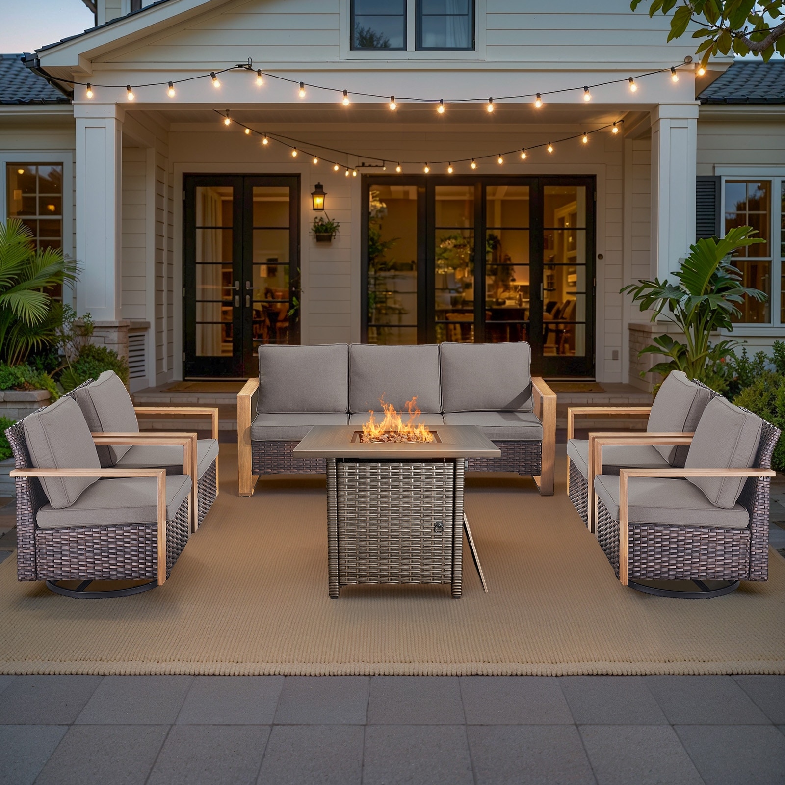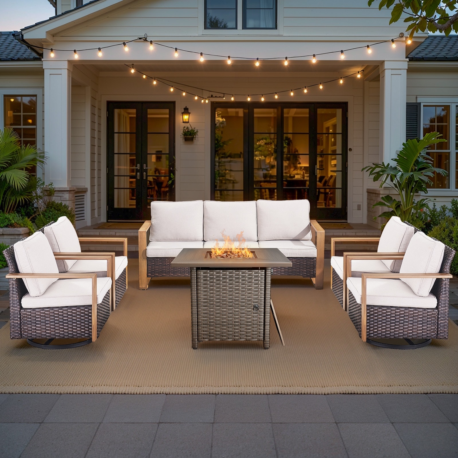 Pocassy 41 in Fire Table with Patio Sofa Swivel Chair Ottoman