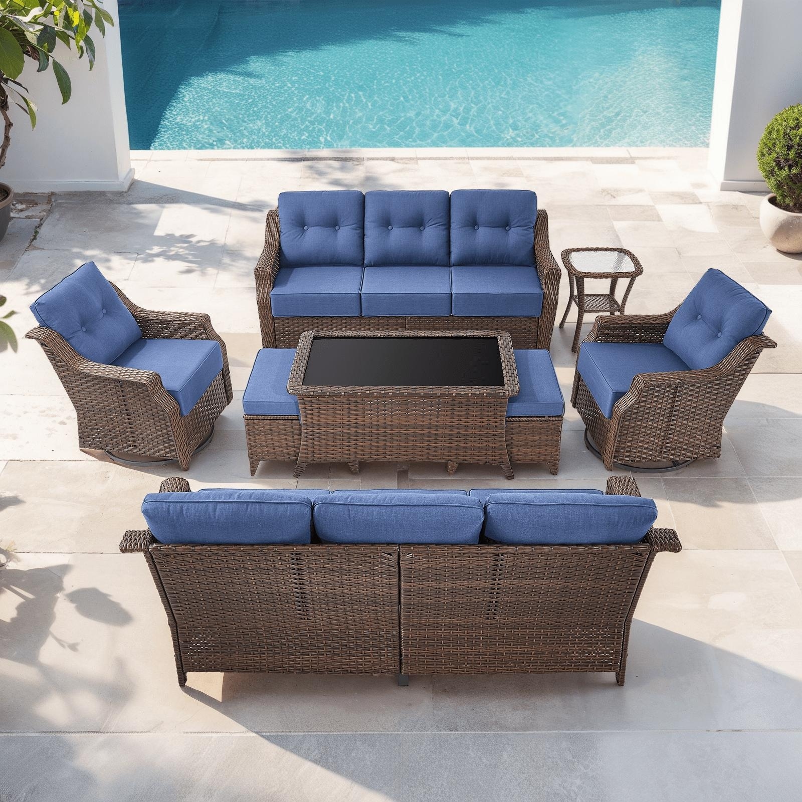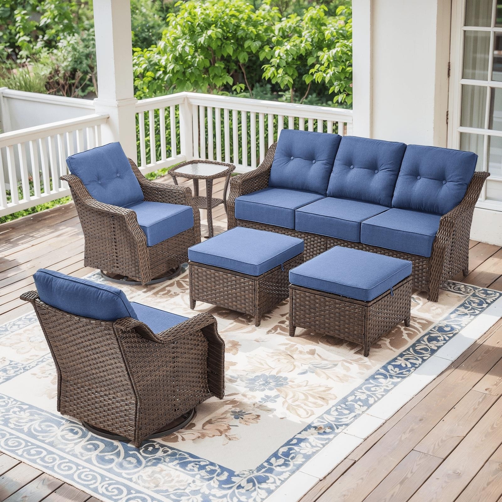 Pocassy Patio Outdoor Sofa Ottoman with Swivel Chair Table Funiture Set.