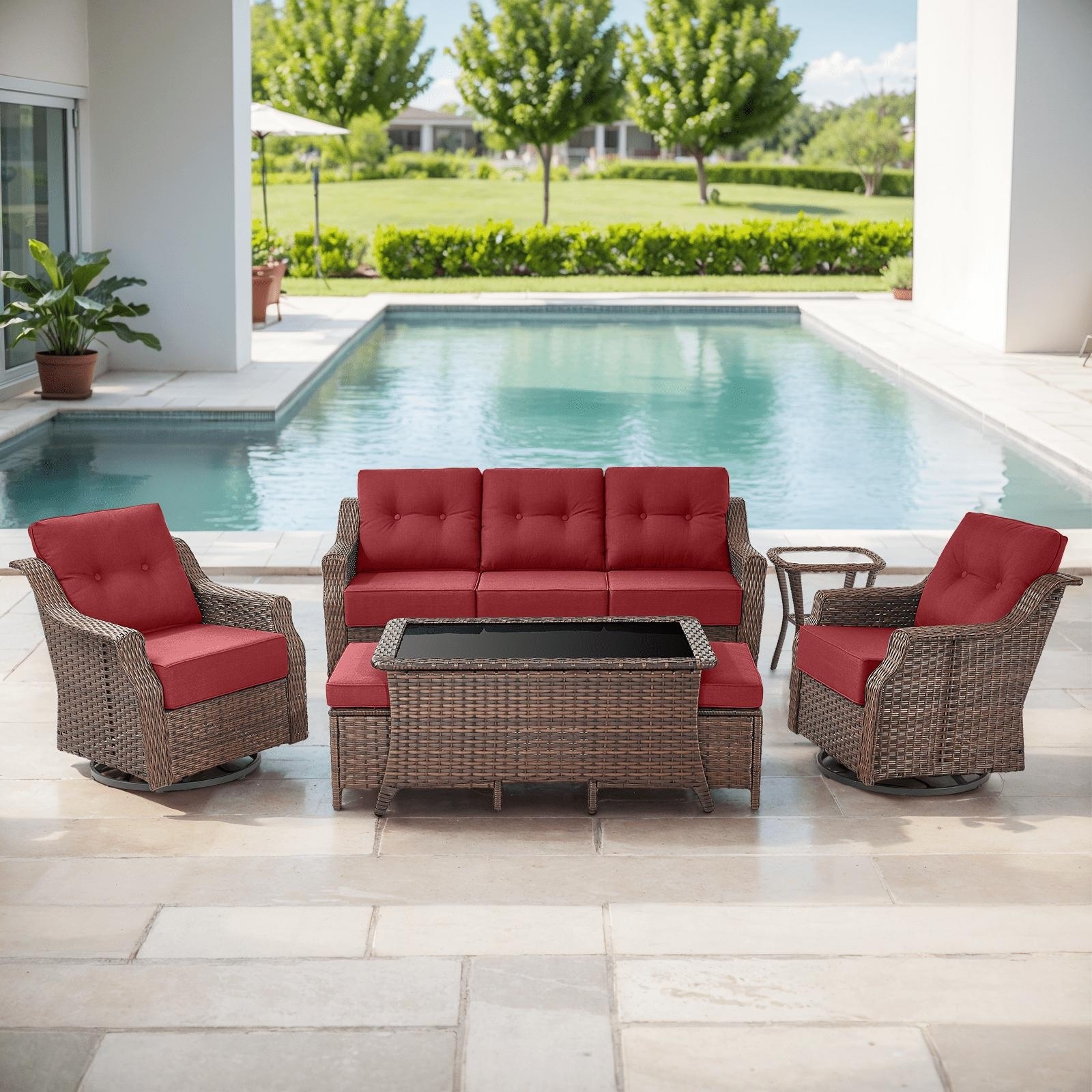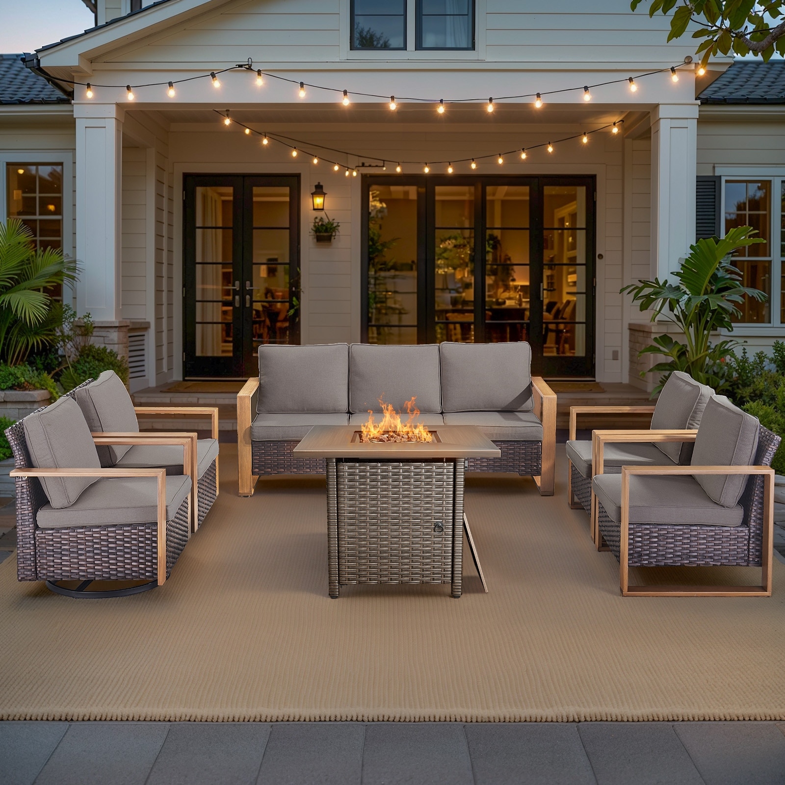 Pocassy 4/6/8PCS Sofa Swivel Chair with Fire Pit Table Set