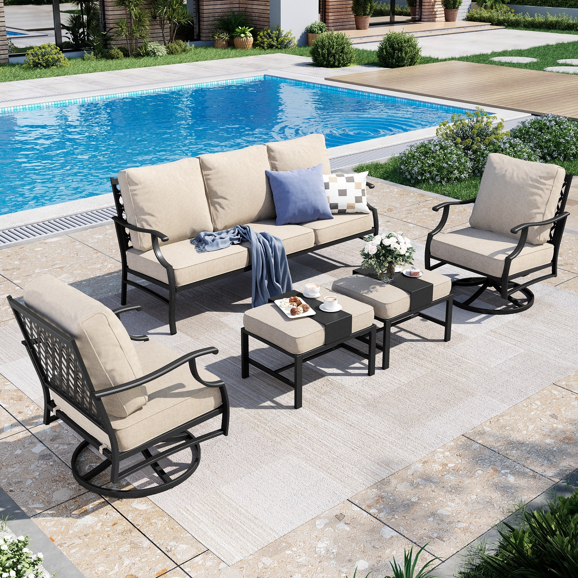Outdoor Sofa with Swivel Rocker Chairs and Fire Pit Table