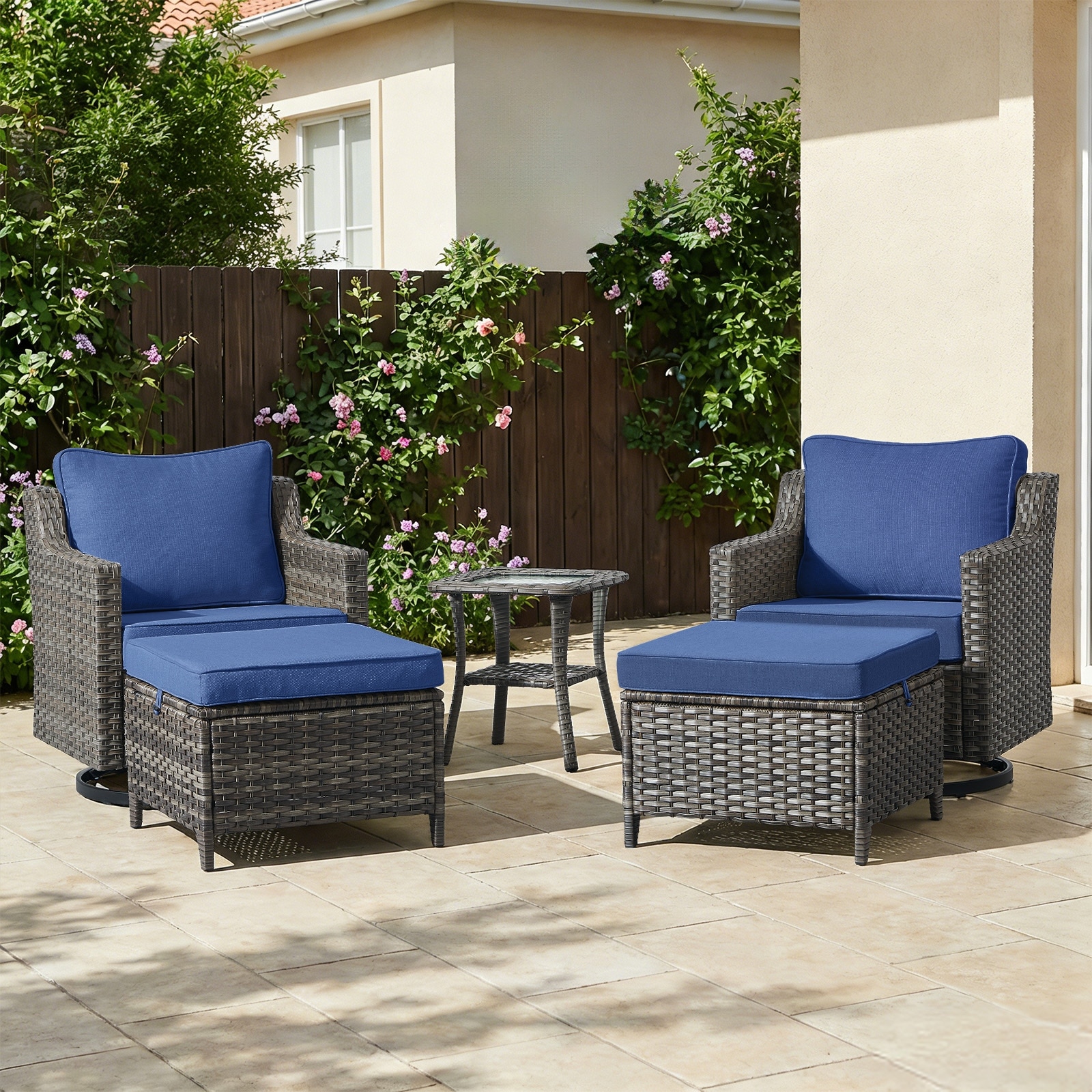 Meyreso 5-Piece Gray Wicker Patio Swivel Gliders Conversation Set with 4-Inch Thick Olefin Cushions