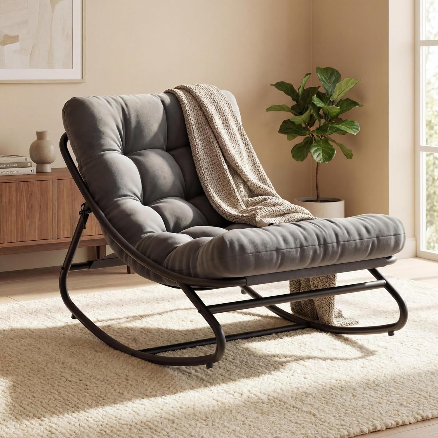 Oversized Patio Rocking Chair with Cushions, Heavy Duty Metal Frame, 450 lbs Capacity Outdoor Recliner