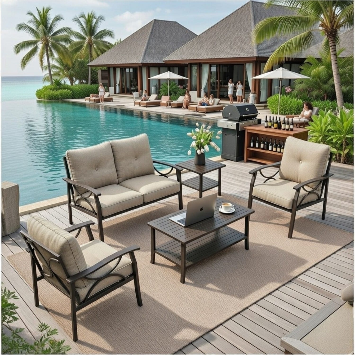 Pocassy Outdoor 4 Inch Sofa Swivel Chairs Table
