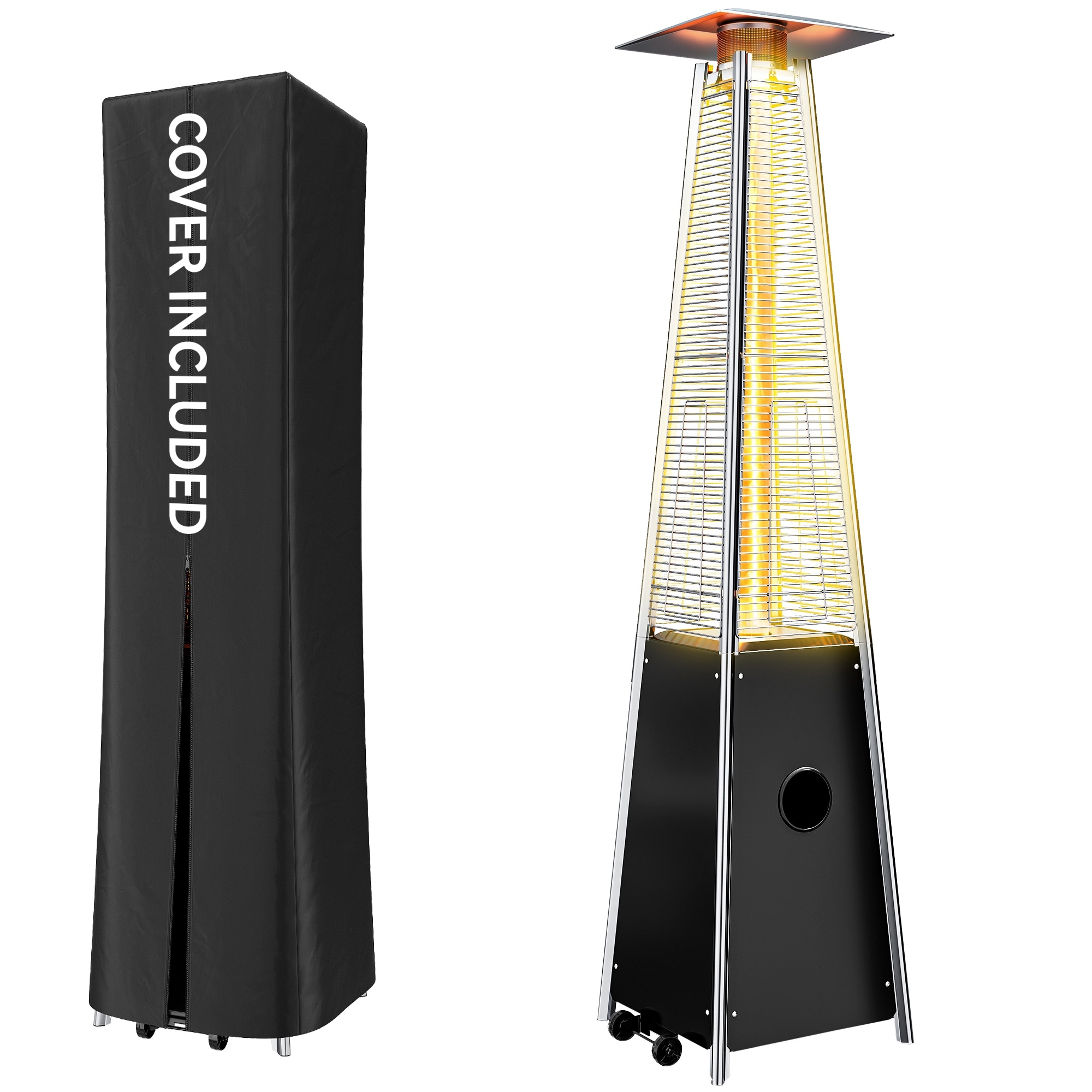Moasis Patio Heater 48,000 Btu Outdoor Pyramid Patio Heater Quartz Glass Tube Propane Heater with Cover and Wheels