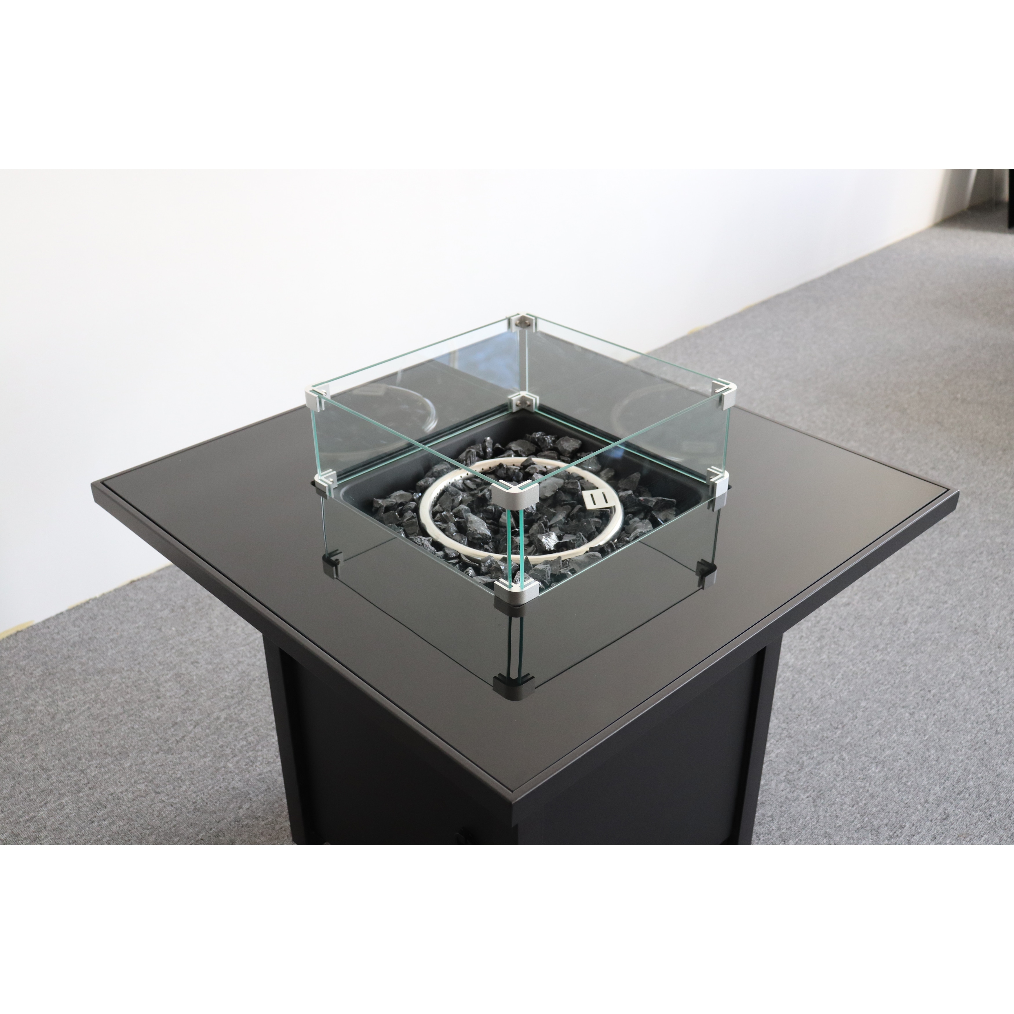30 Black Powdercoated Metal Fire Pit With Smoked Glass Top