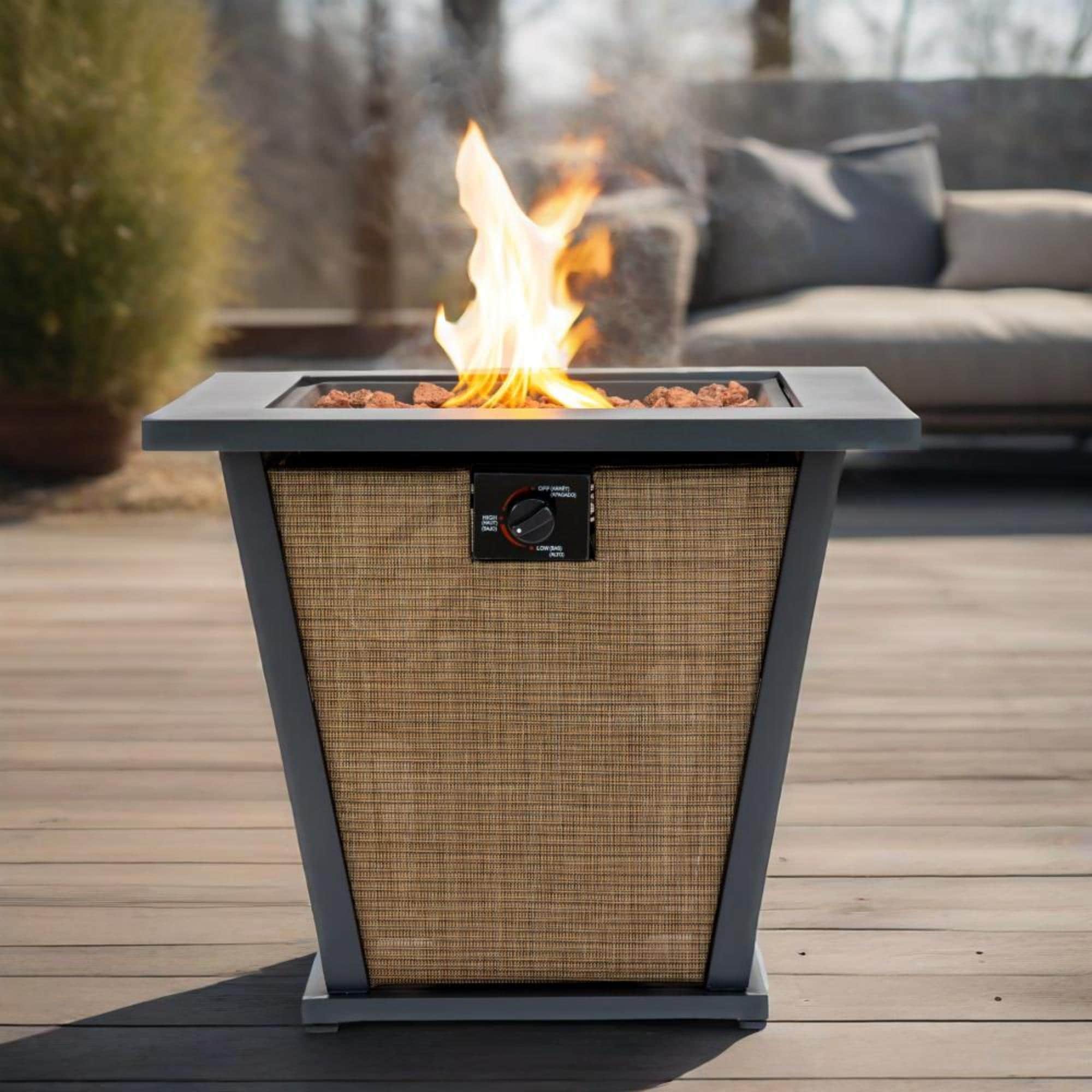 28" Propane Gas Fire Pit Table, 50000 Btu Square Steel Fire Pit For Outside Patio Deck Garden Courtyard -Brown