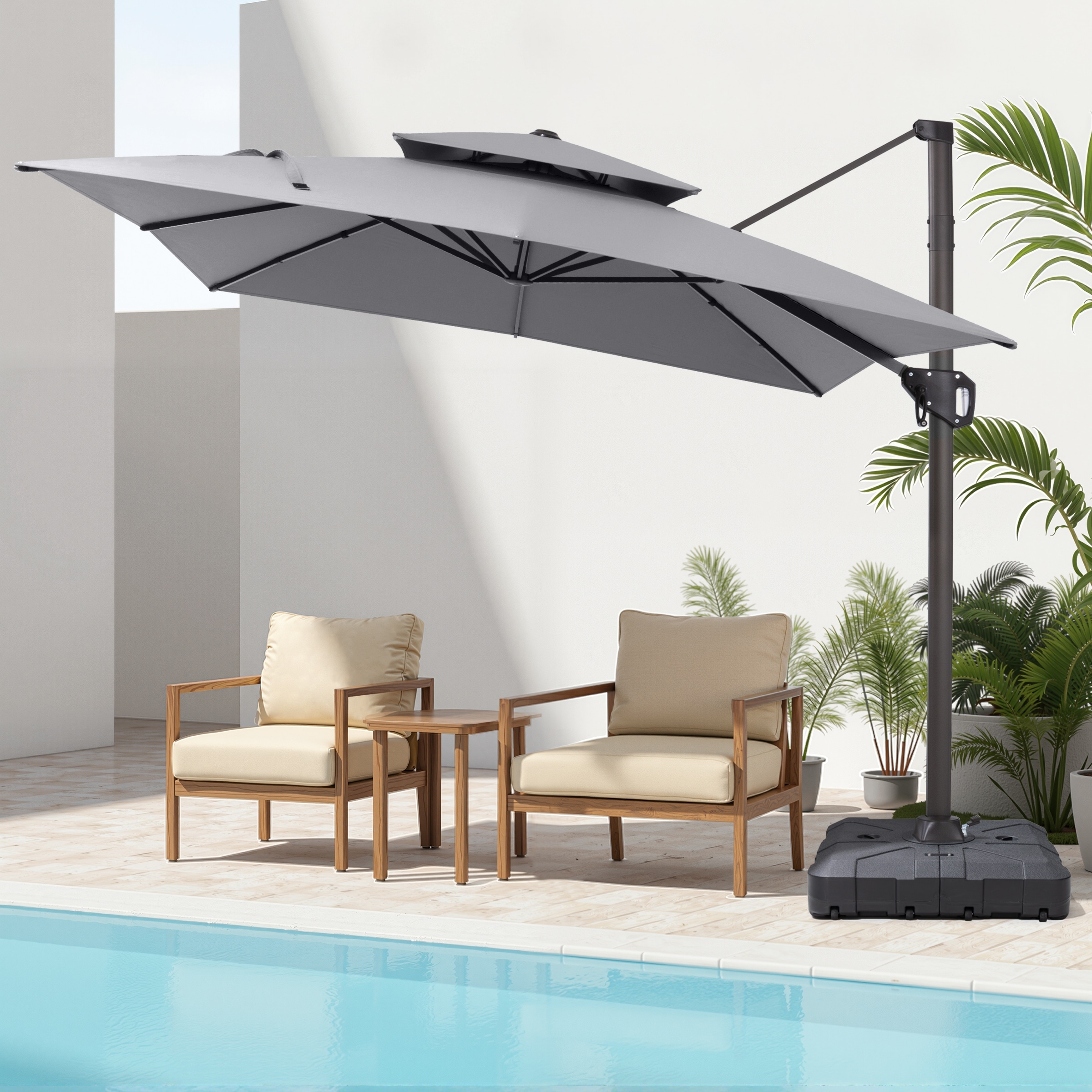 Pellebant Outdoor 9x11FT Patio Dual Top Cantilever Offset Umbrella with HDPE Base