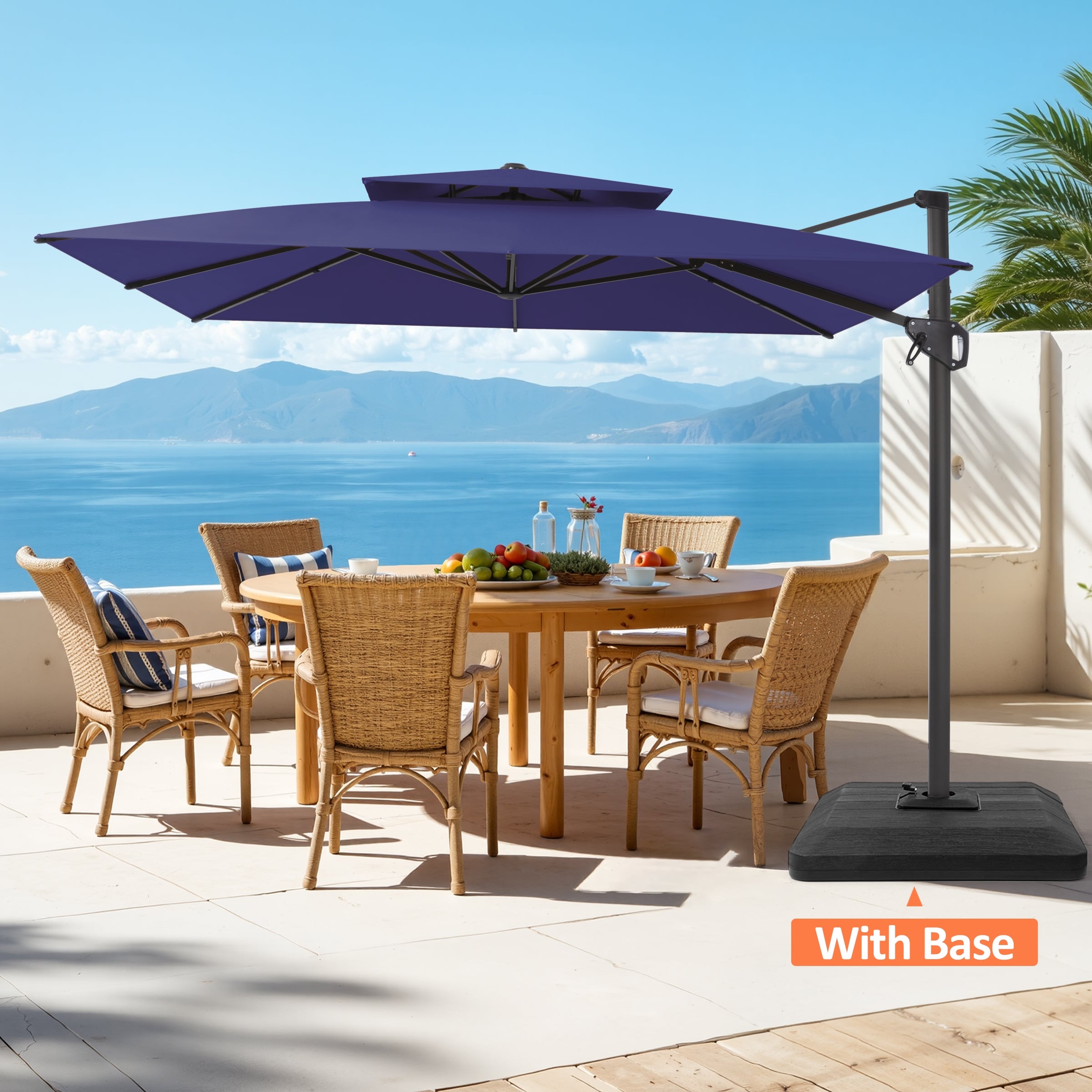 VredHom 9x11 FT Rectangular Aluminum Outdoor Patio Double Top Cantilever Umbrella with Weight Base