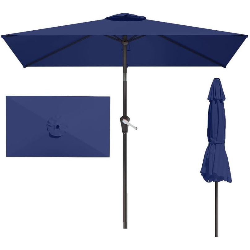 6.5' x 10' Rectangular Patio Umbrella with UV Protection, Push Button Tilt, and Crank Lift for Outdoor Use