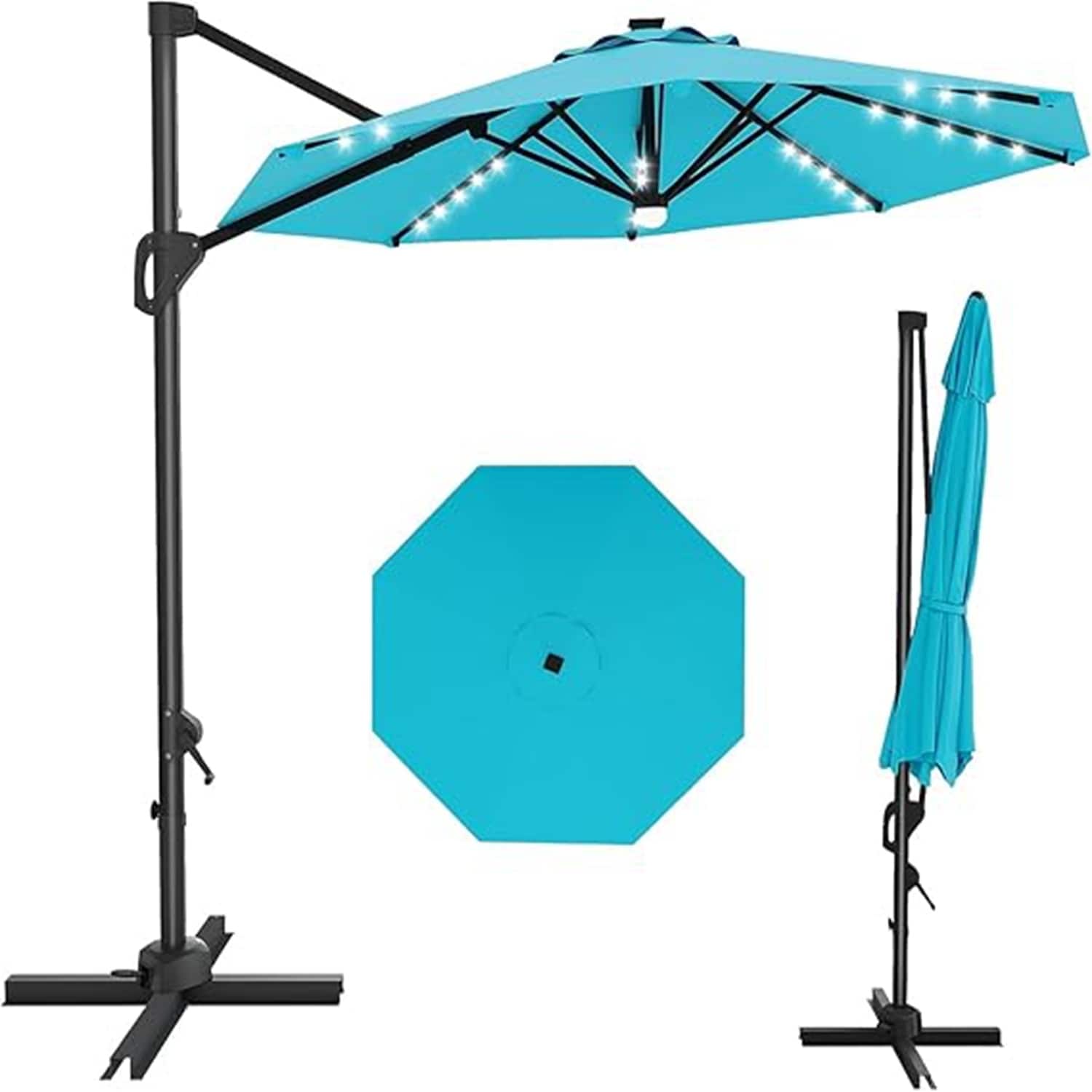 10ft Mini Patio Umbrella 360° Rotation Base Lights Turquoise Blue