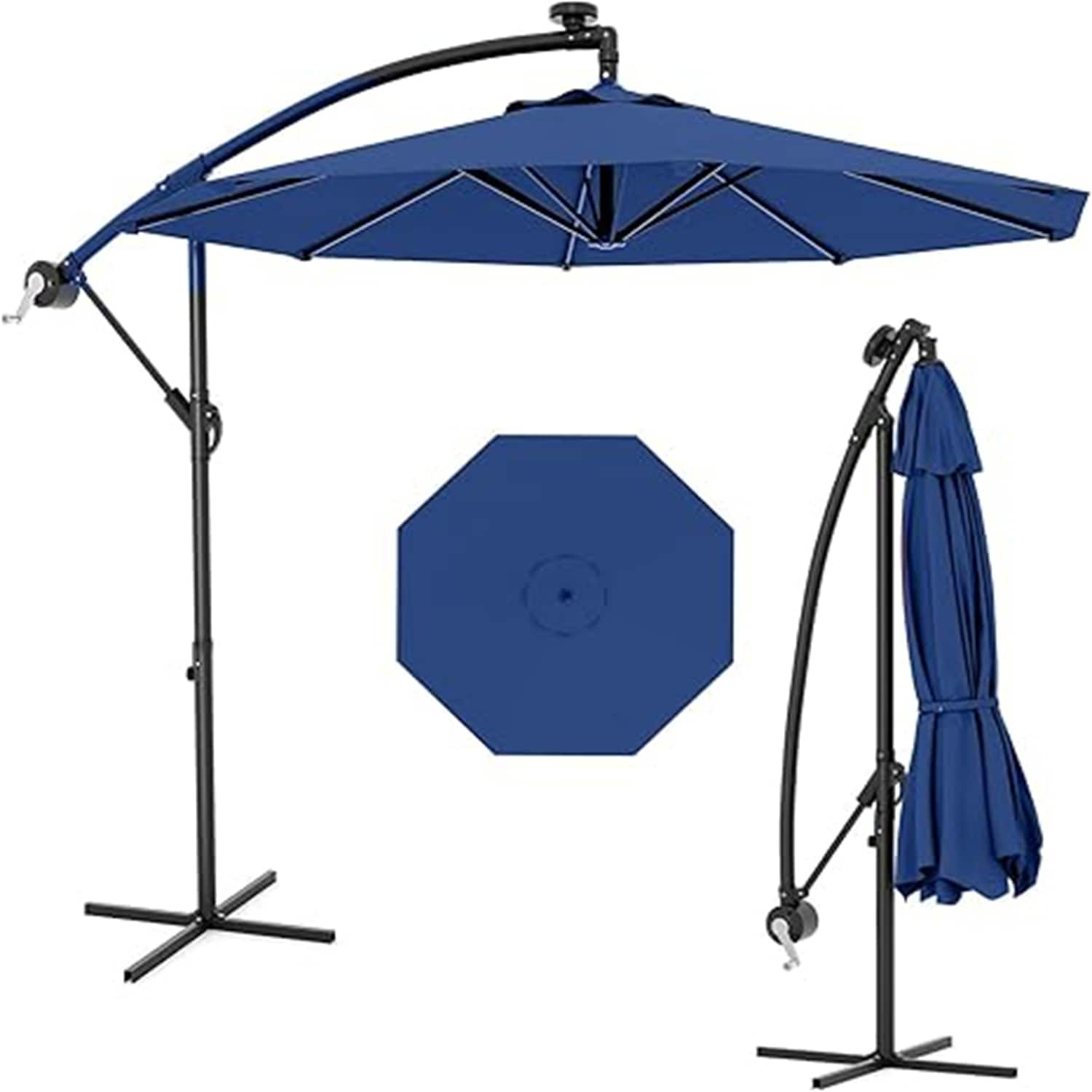 10ft Offset Umbrella Cross Base 360° Rotation Infinite Tilt Navy