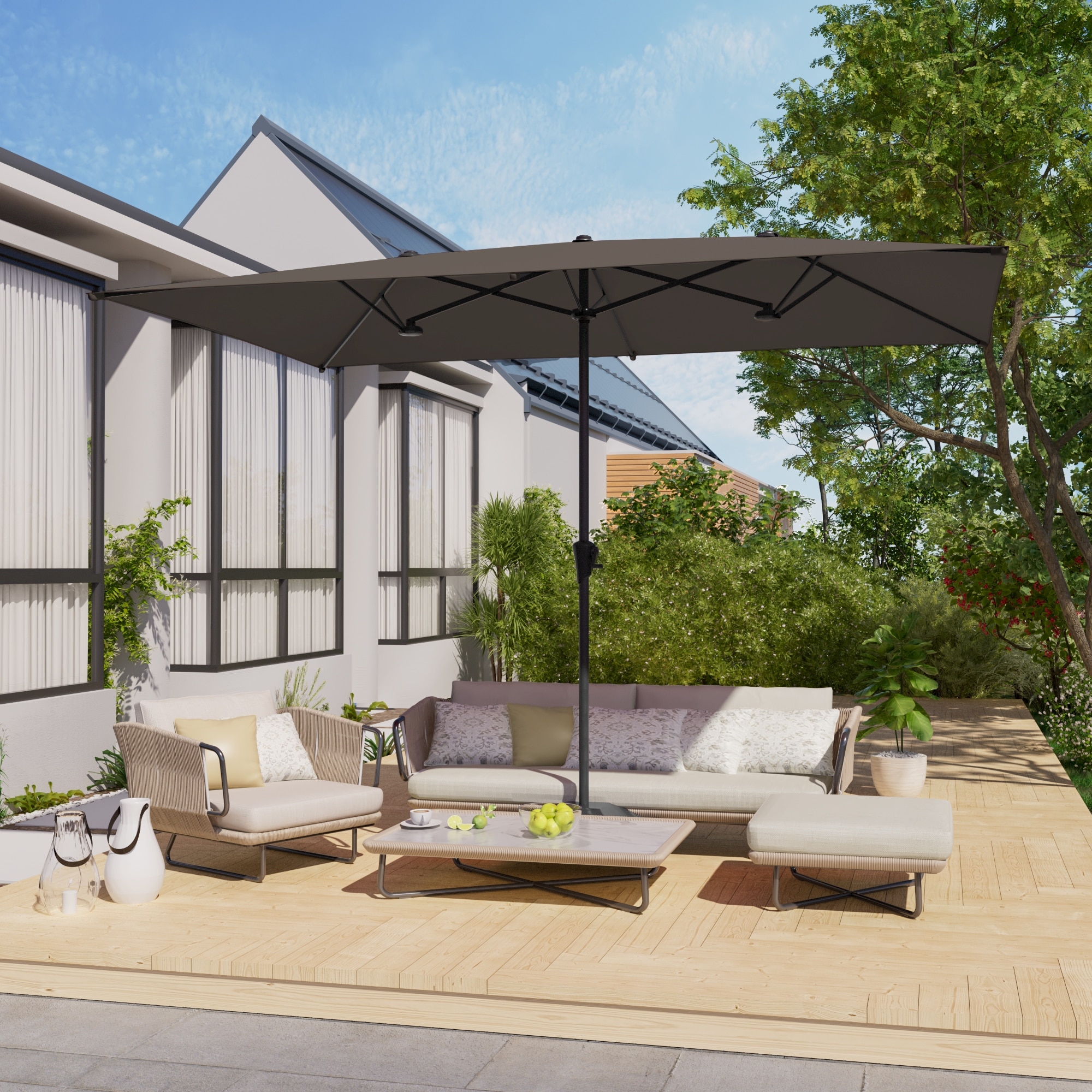 LIVOOSUN 10 x 6.5Ft Large Double-Sided Rectangular Outdoor Patio Market Umbrella with Crank, Gray