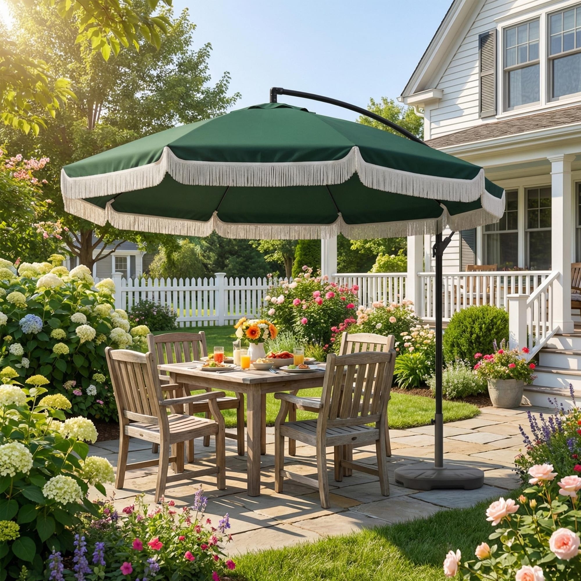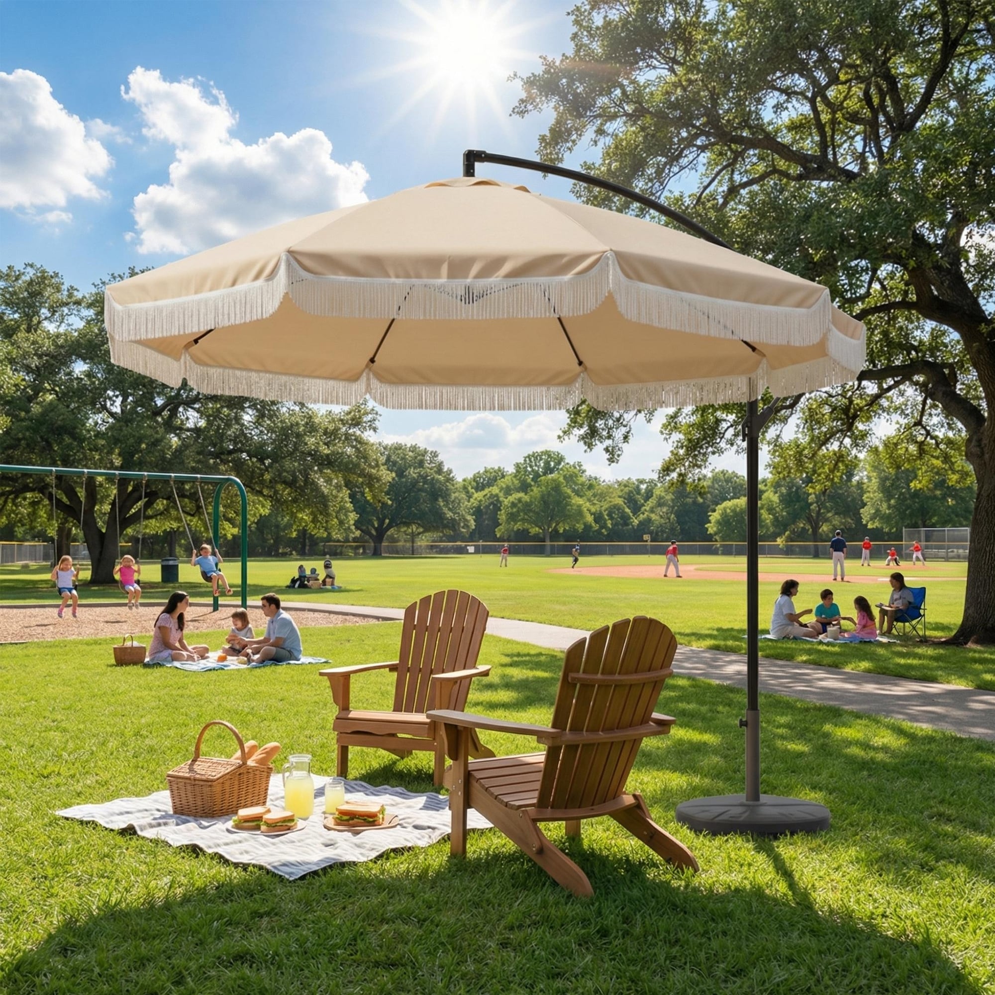 Clihome 10 Ft.Offset Umbrella Fringed Patio Market Umbrella 360 Rotation Cantilever Umbrella
