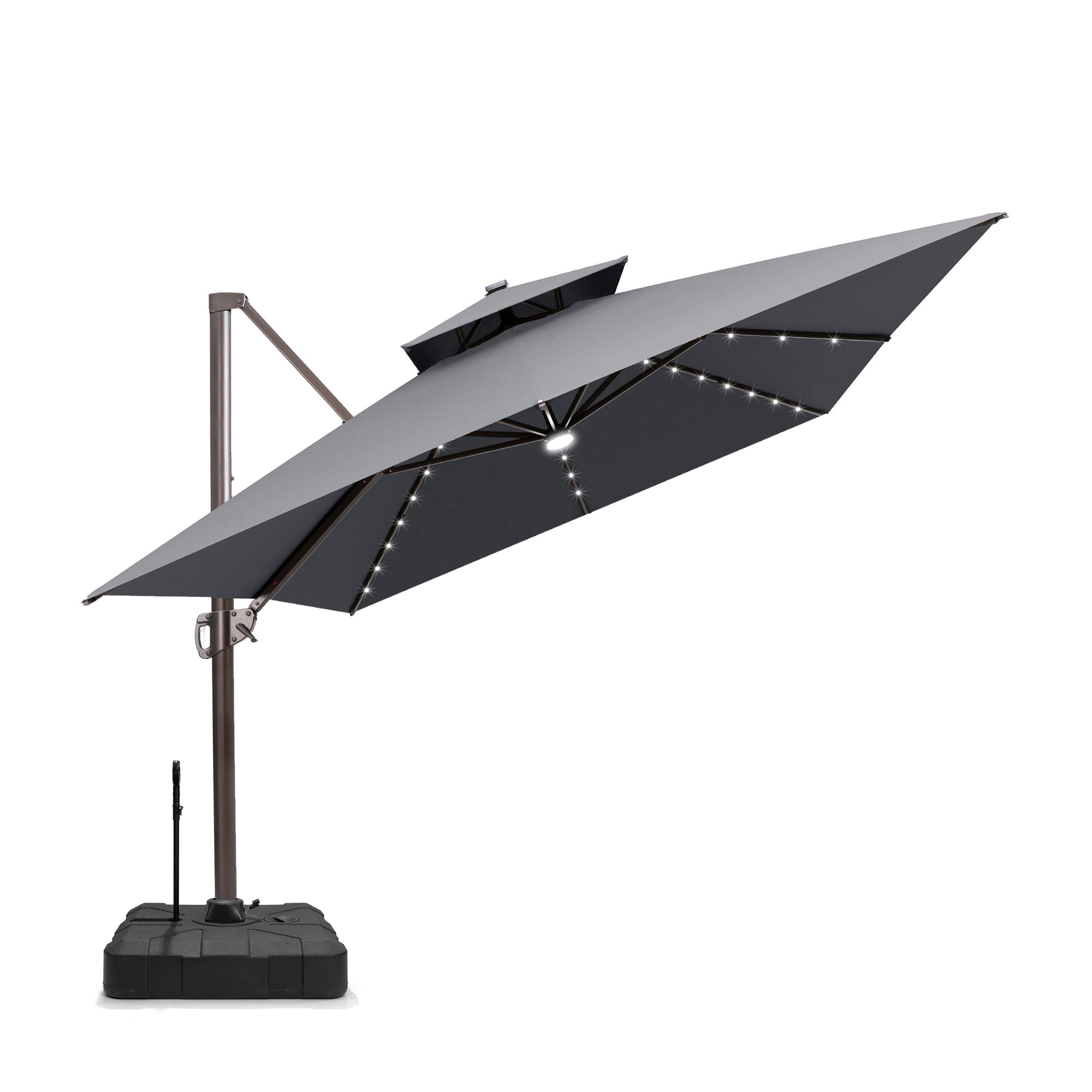 Pellebant 10X13 FT Outdoor Double Top Cantilever Patio Umbrella Solar LED Light with Rod Base
