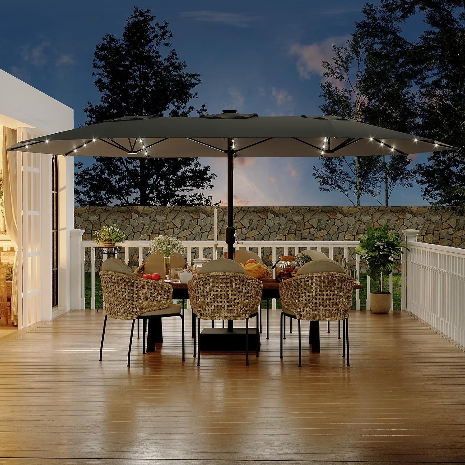 15FT Patio Umbrella with Solar Lights and Crank Handle,Base Included
