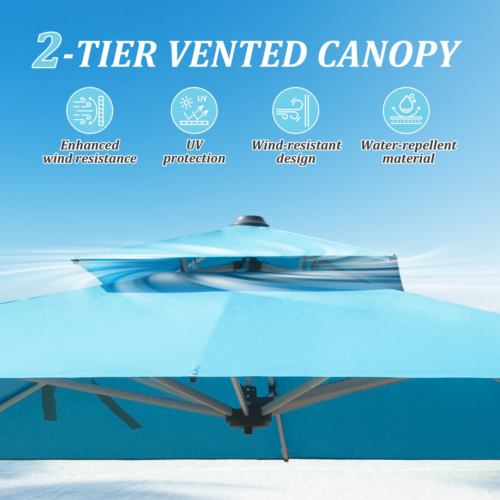 Pellebant 9X11FT Outdoor Dual Top Patio Umbrella Cantilever Offset with Base