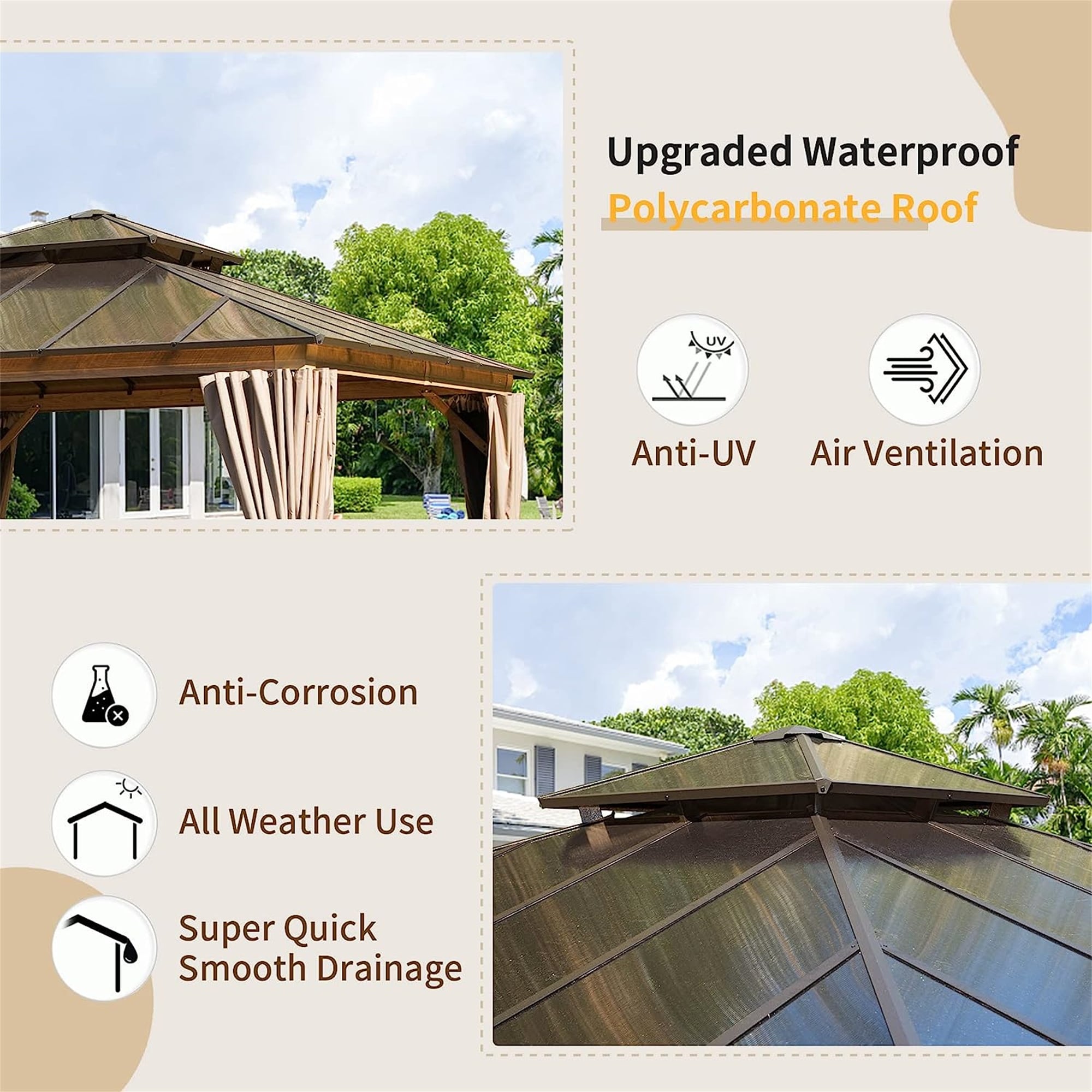10x10 Ft Outdoor Patio Gazebo Replacement Canopy (Base Not Included)