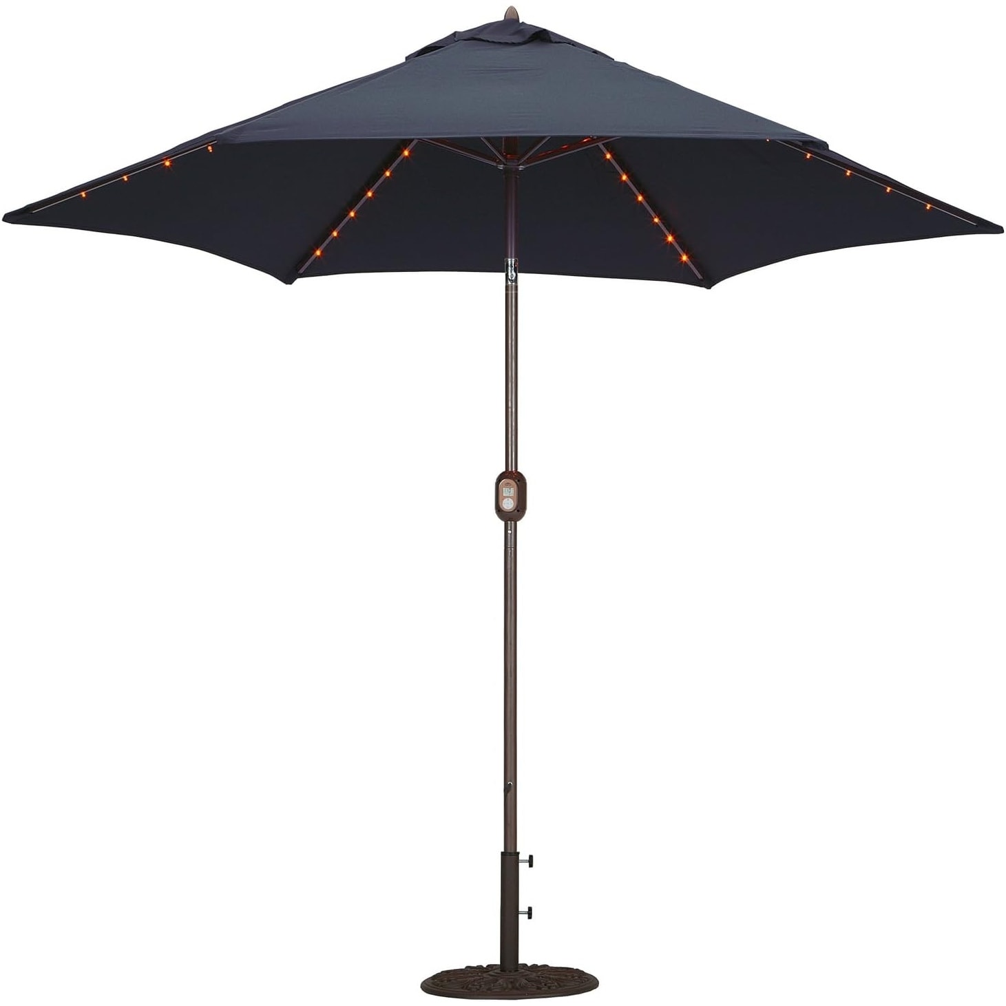 9 ft Bronze LED Lighted Aluminum Market Umbrella with Navy Polyester Cover