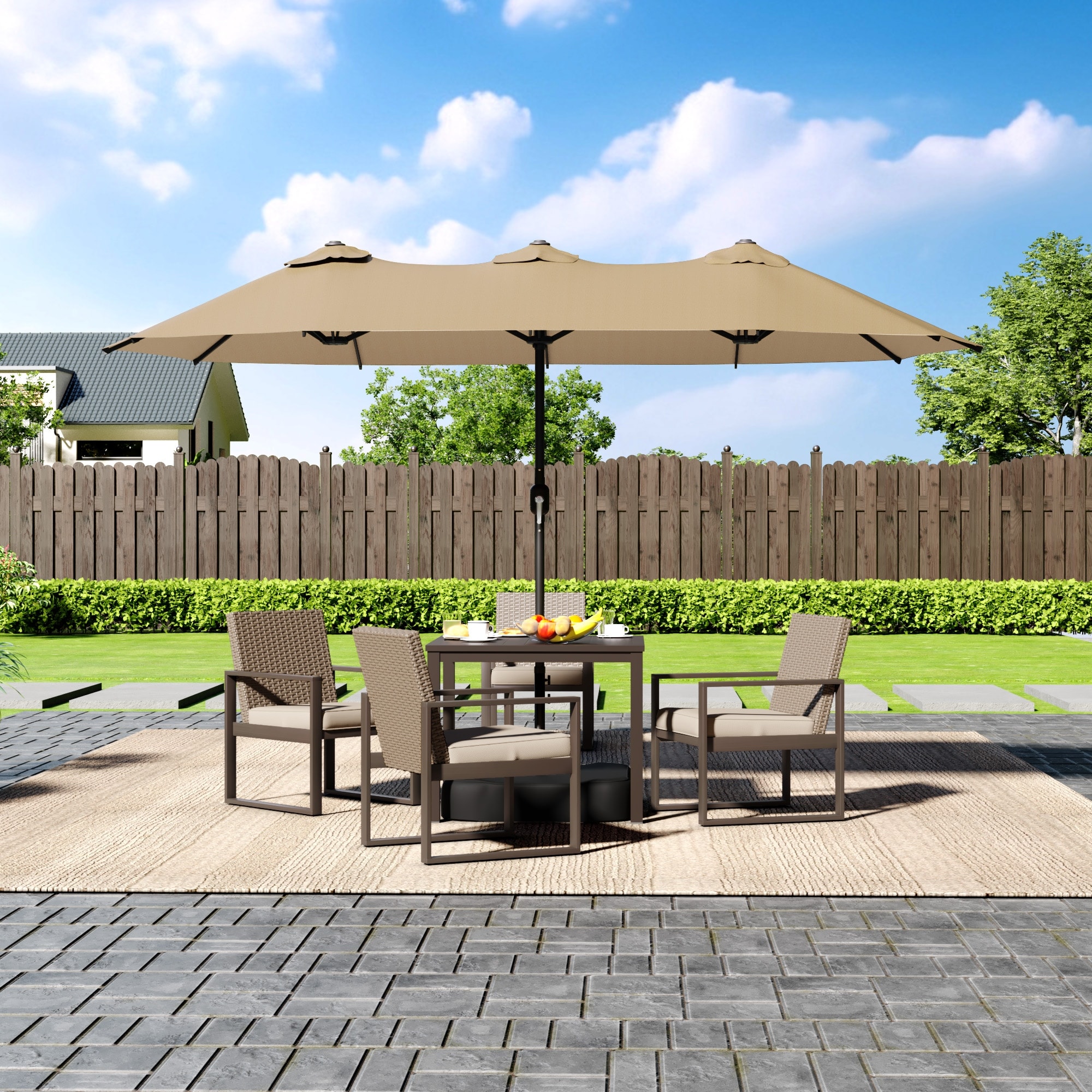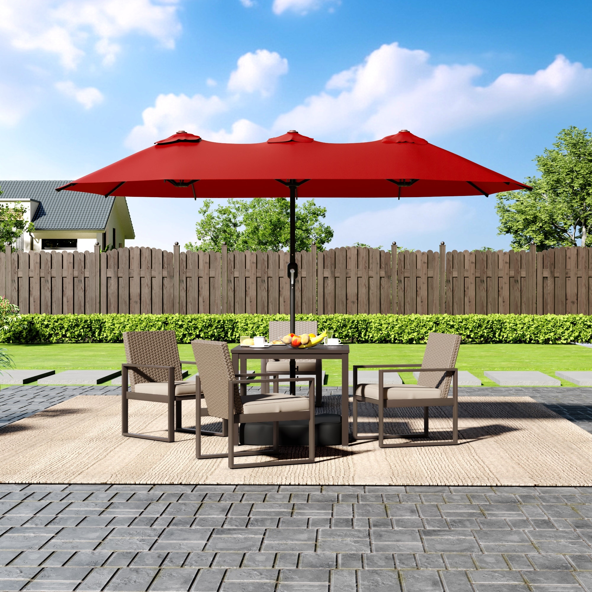 15 FT Double-Sided Patio Market Umbrella with Base, Large Outdoor Sunshade Umbrella, Waterproof and Windproof