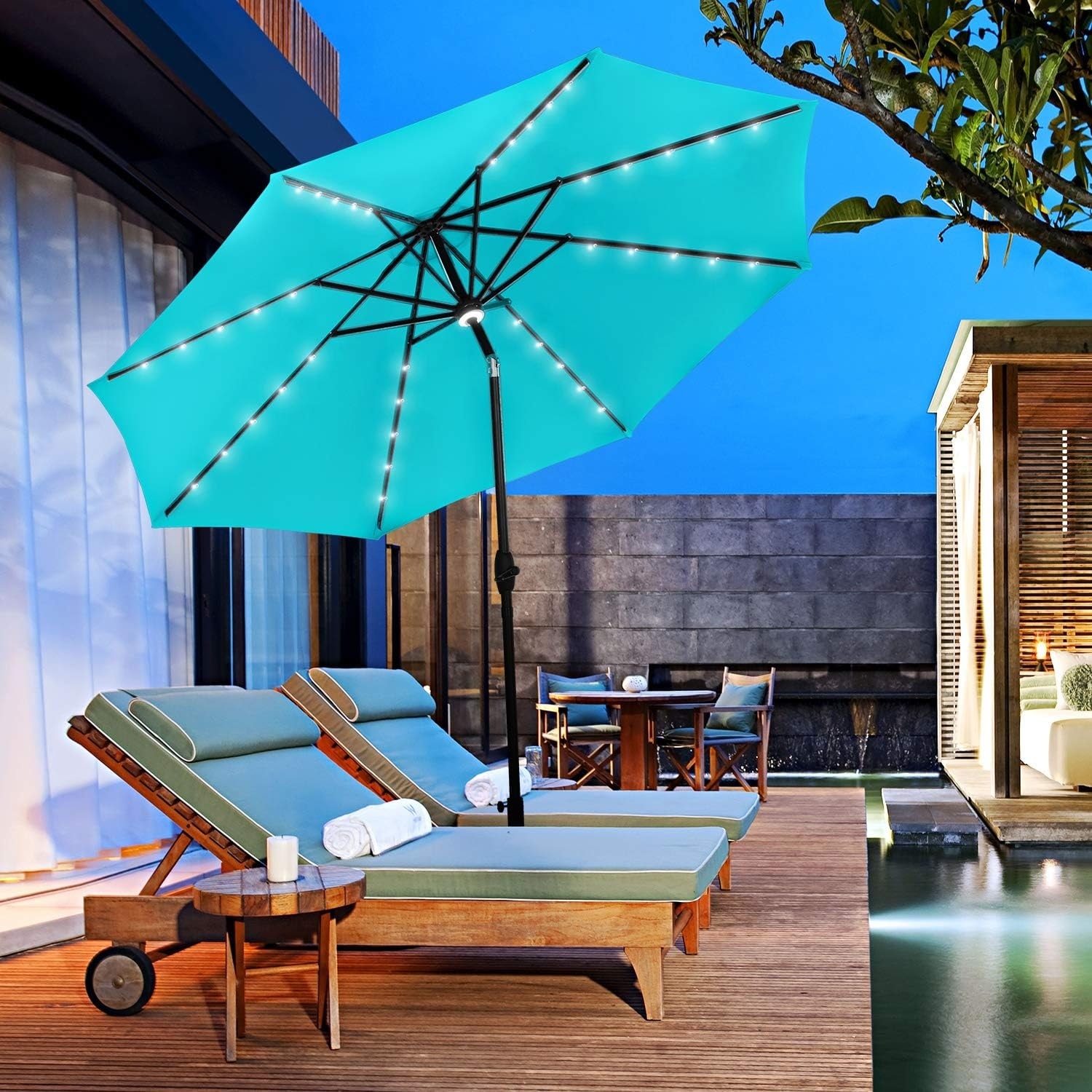 10 x 6.5Ft Solar LED Patio Umbrella with Crank Tilt for Pool Garden