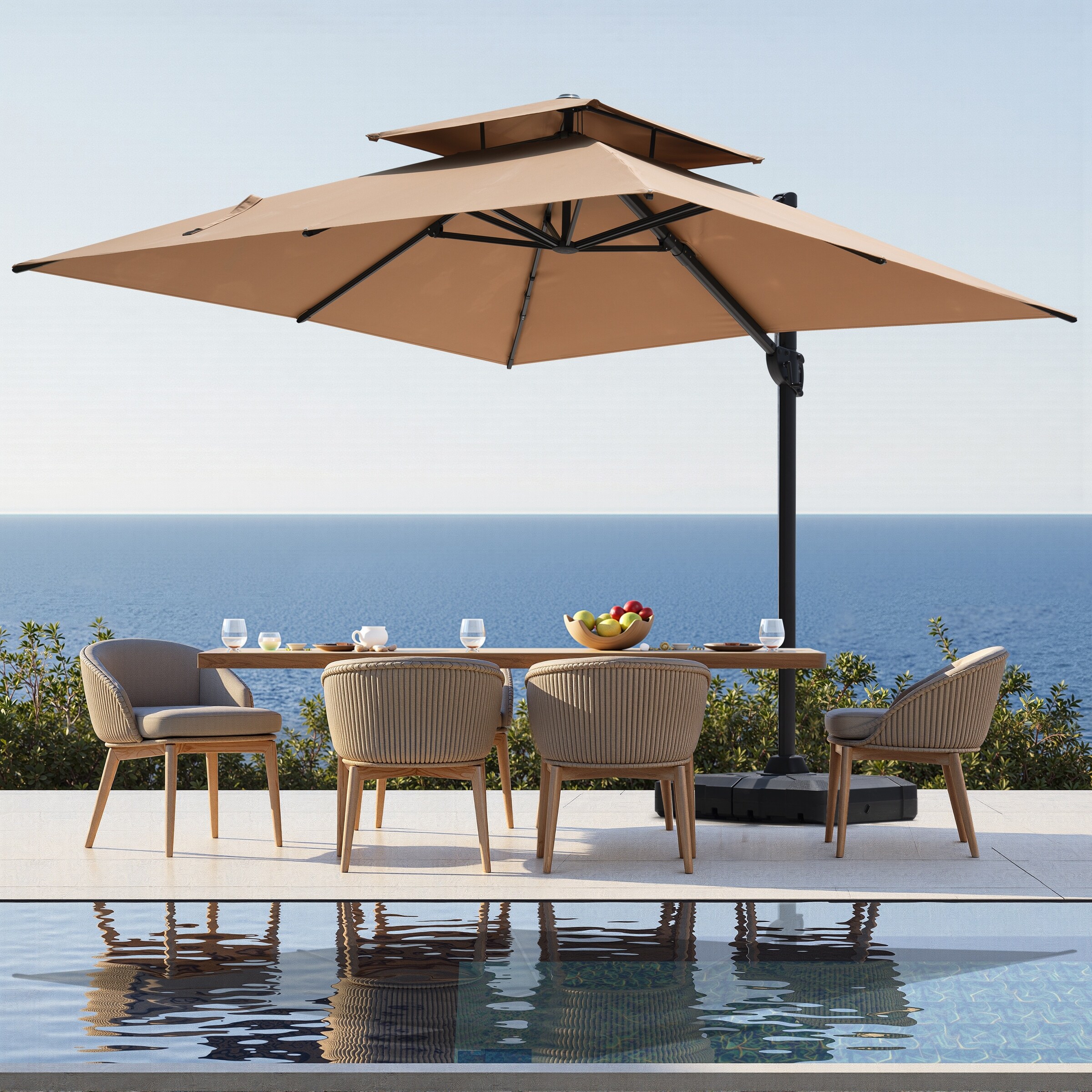 Pellebant 9 x 11 ft Outdoor Patio Cantilever-Offset Umbrella with Weight Base Double Top