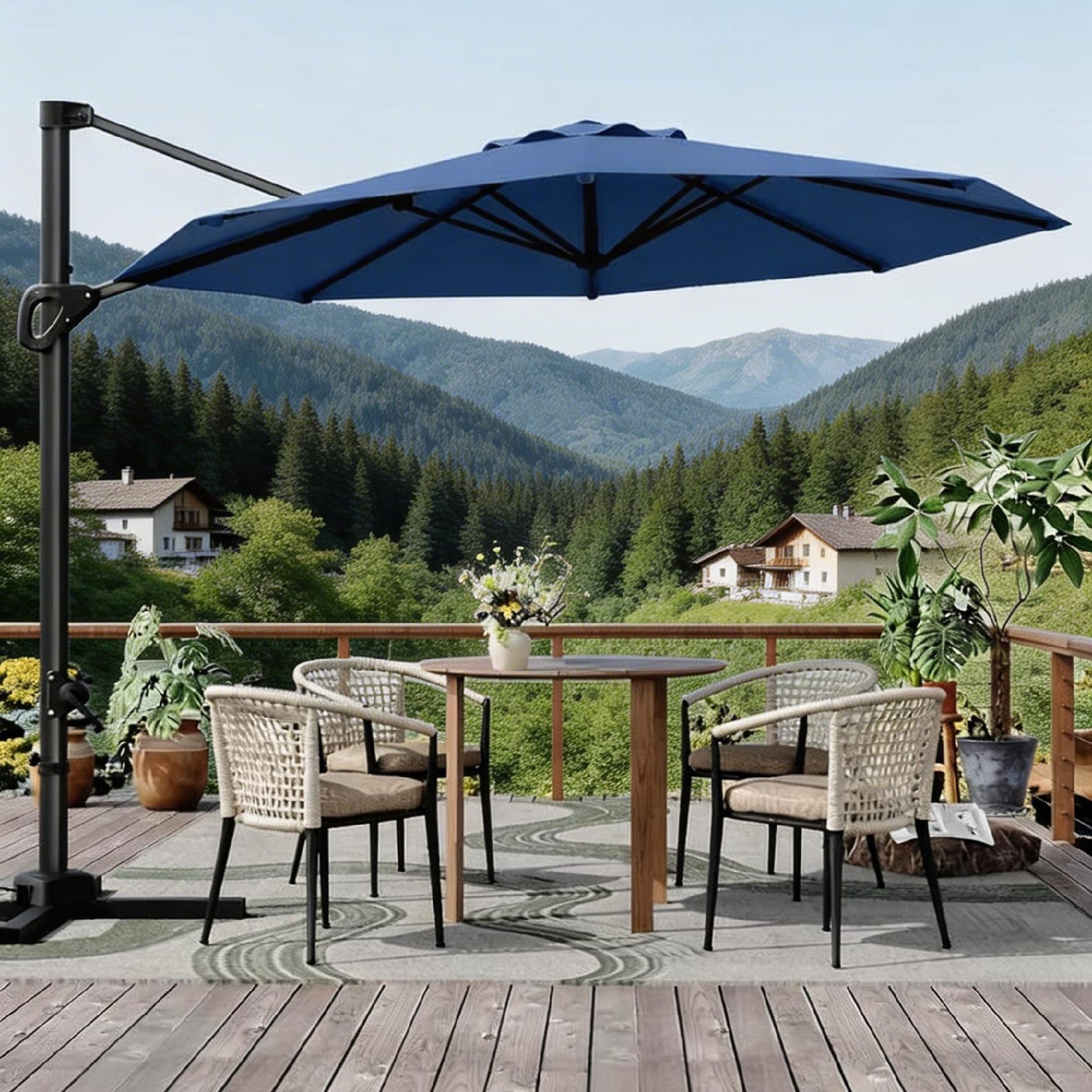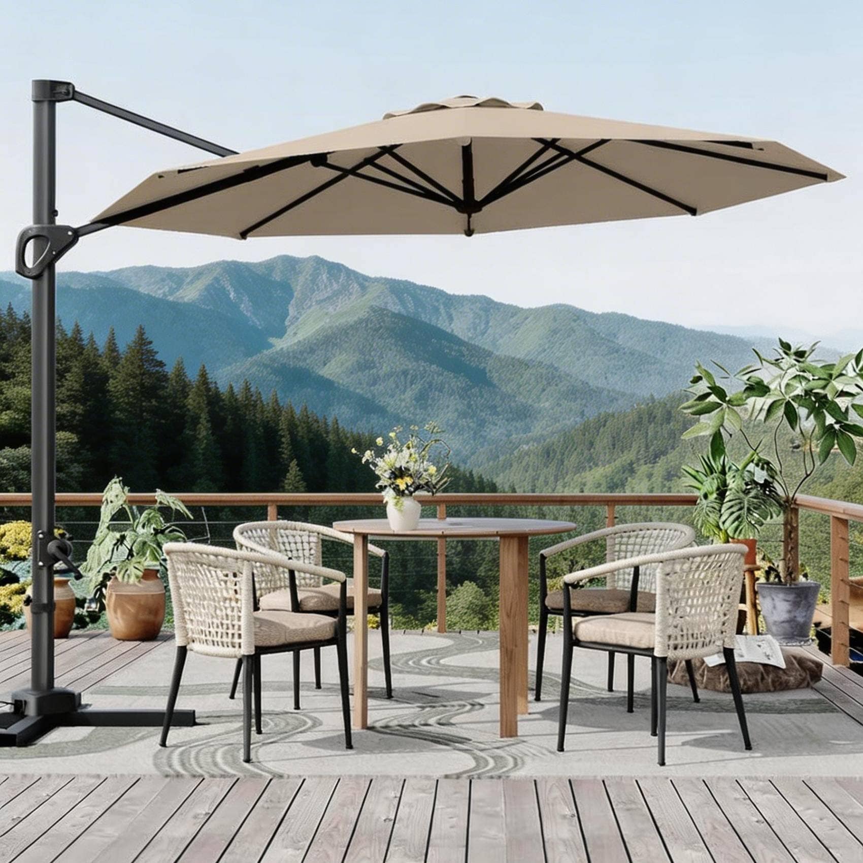 Outdoor Cantilever Umbrella, 360-Degree Rotation, with Base Included